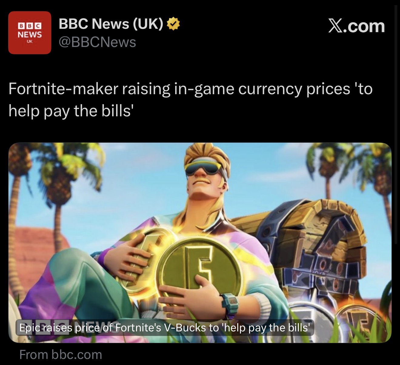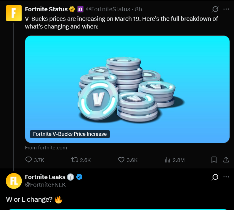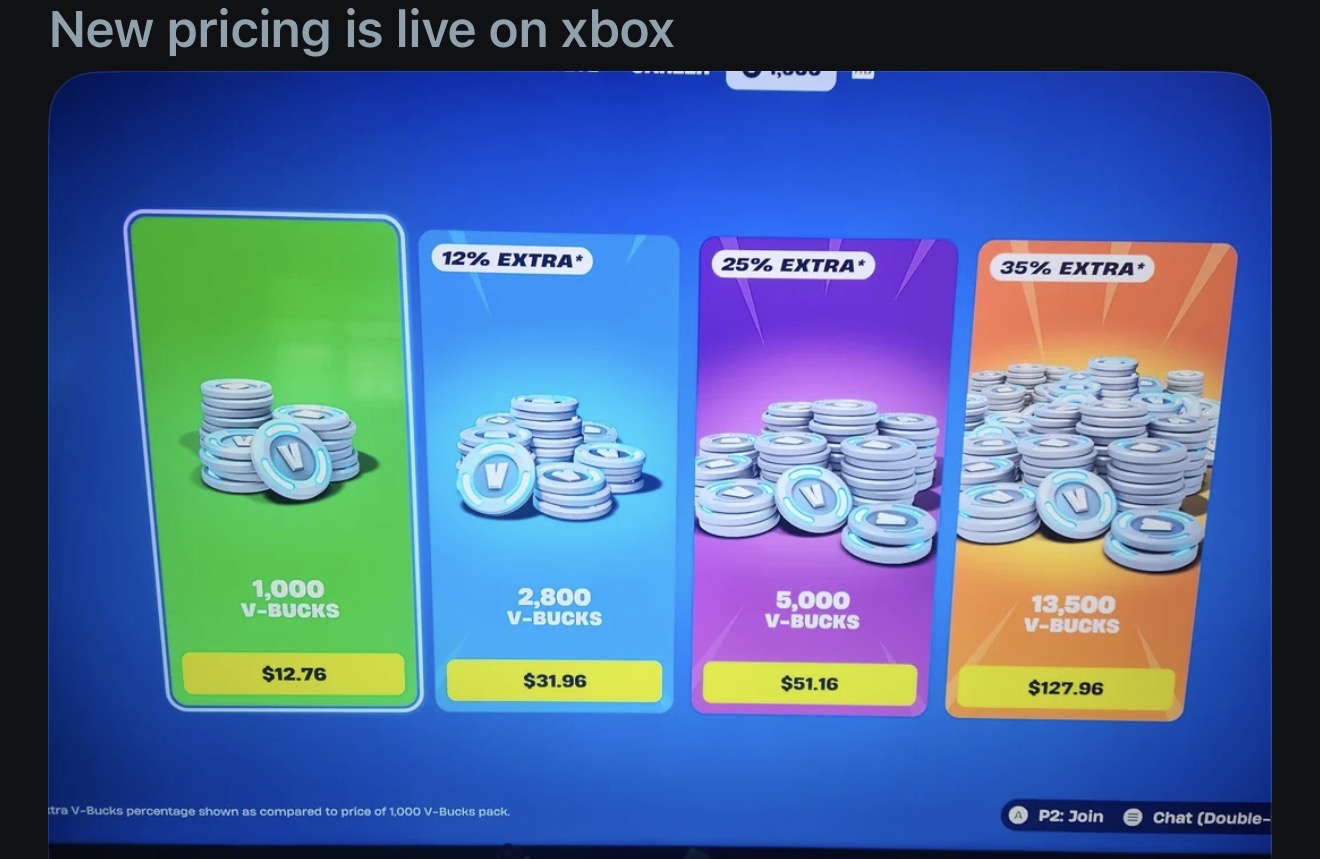 Tim Sweeney here!If anyone is able to shill and share how much you love these vbucks changes, I will donate 1,000,000 vbucks into your account when the next season starts.