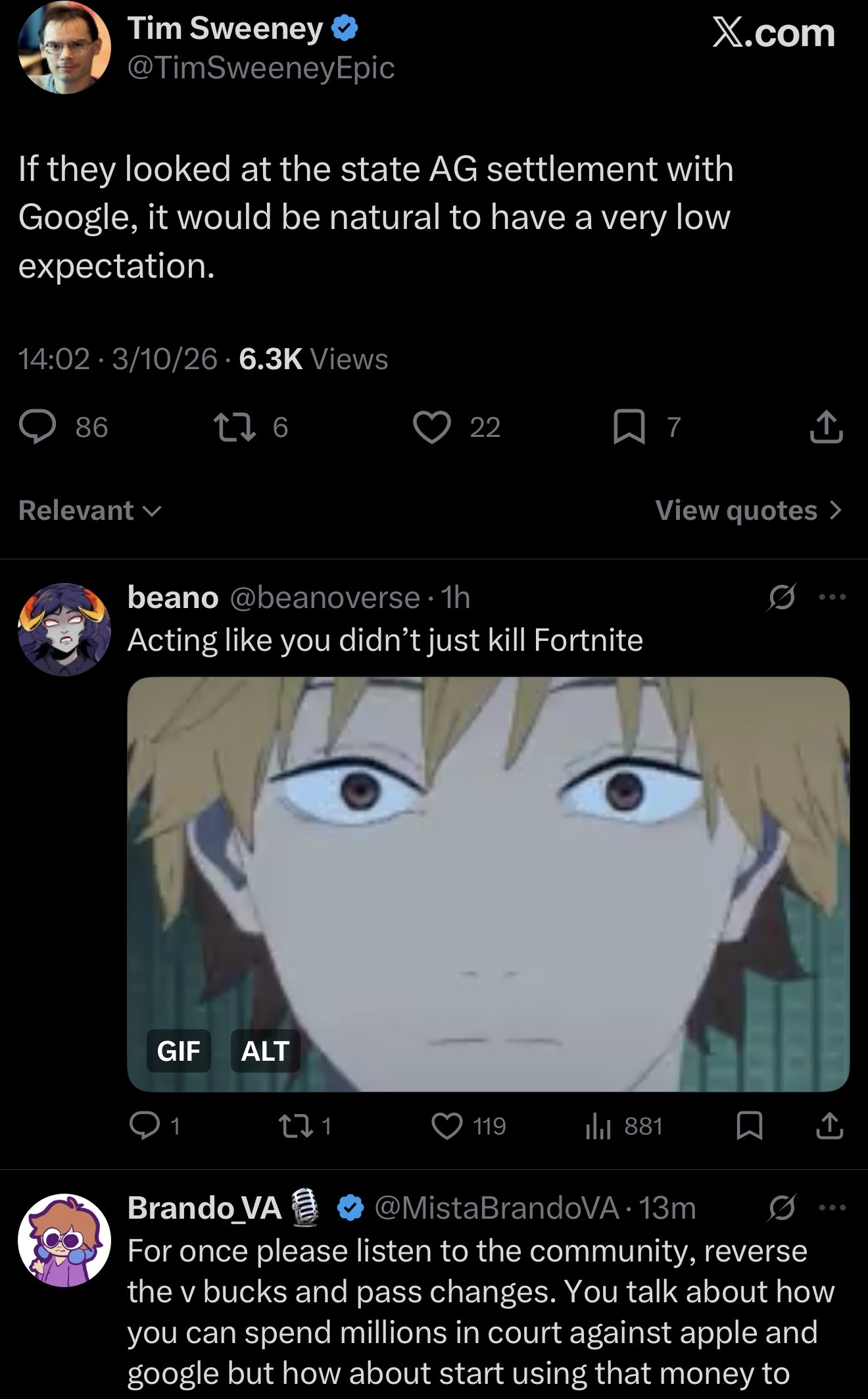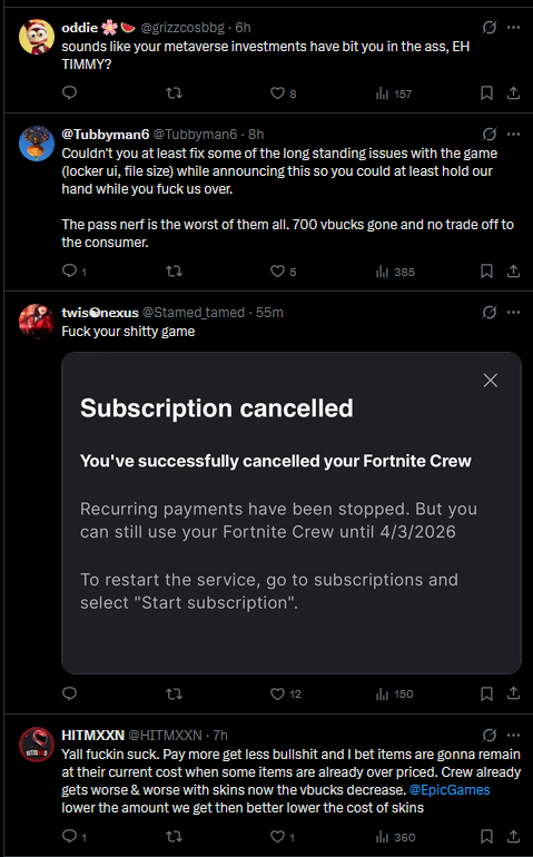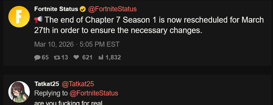 https://x.com/FortniteStatus/status/2031355218475069865epic is getting destroyed in the comments