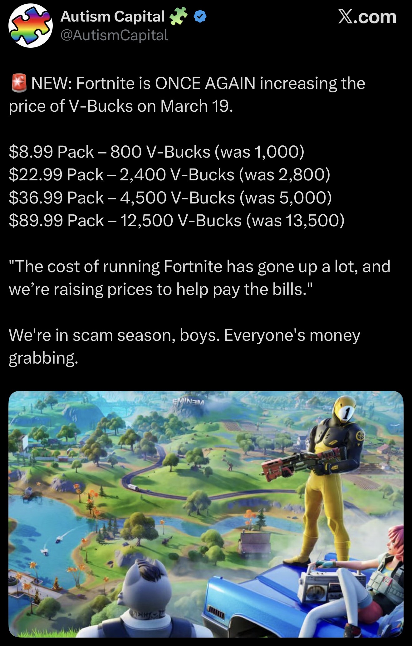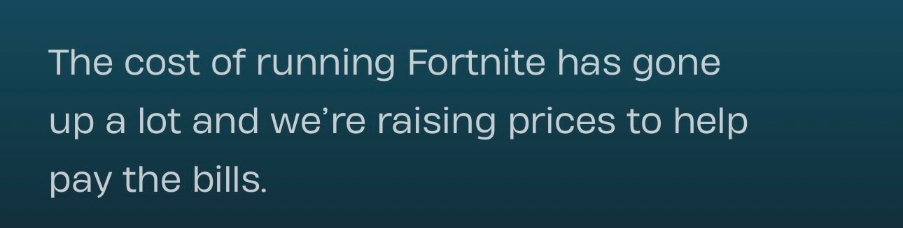 Is just a wittle price increase anon, your favorite fortnite skin needs new shows
