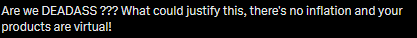 >>559933565literally doesn't matter, children and paypigs will keep buying 15 dollar virtual shoes