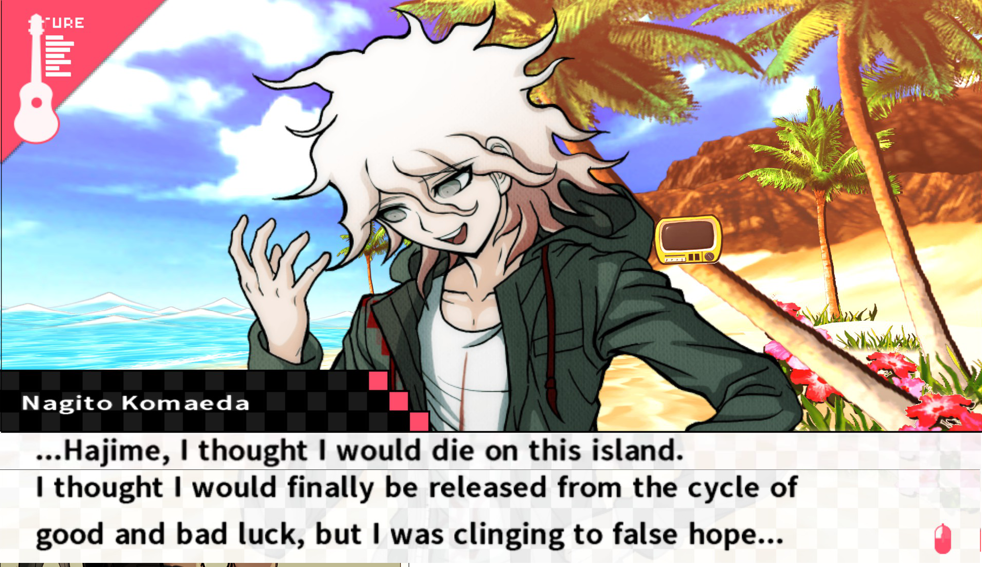 Finally got his island ending and its perfect. I knew it, everything I said about Nagito in that large argument with the other person was right. Nagito is mine forever and I knew everything about him from the first chapter we met! My deluded self-destructive darling!