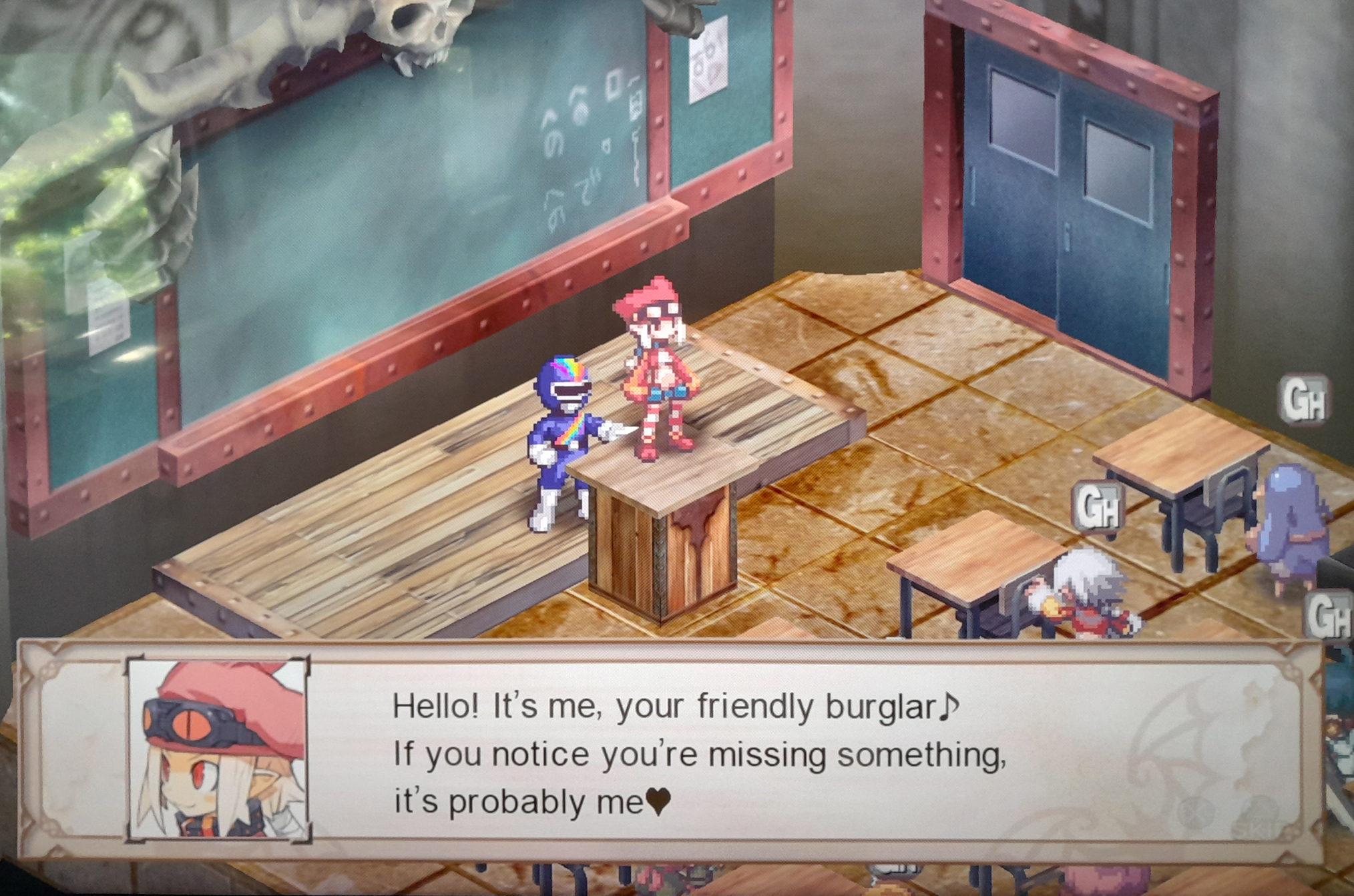 You would be flustered too if barrels suddenly appeared as you walk by. Jokes aside, she flusters during the confession scene and it's sweet beyond imagine.