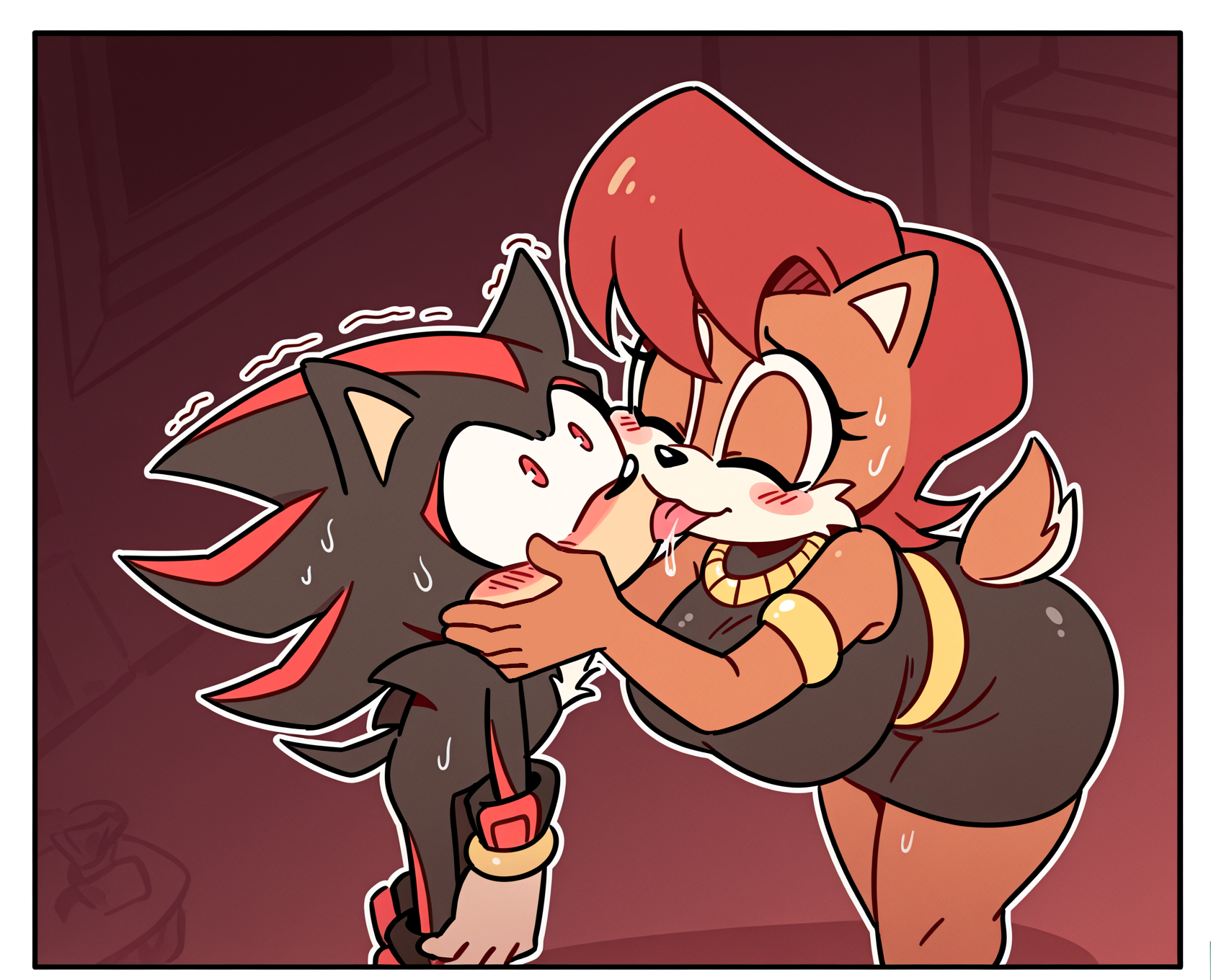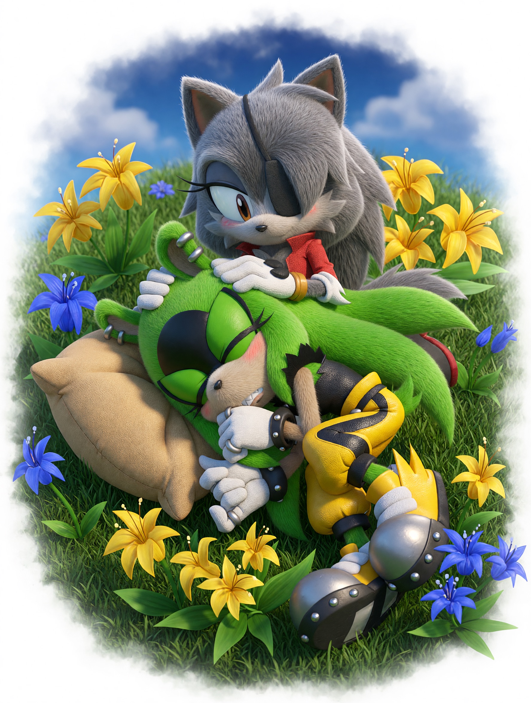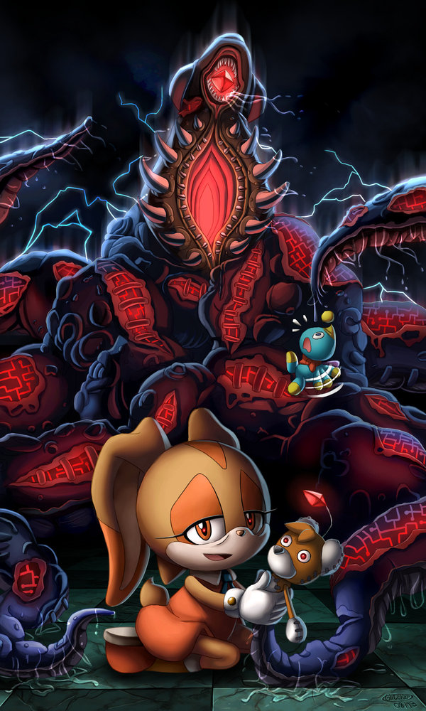 Sonic ejeculating inside Surge while Amy lays below them.