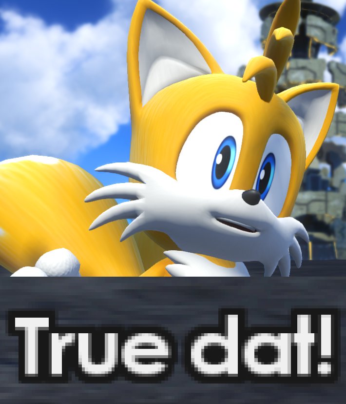 >>559947061No offense, anon, but it's really not that deep. Sonic being in a chill scenario is just to make the contrast with what Tails is doing more apparent so the joke lands better. It's a meme.