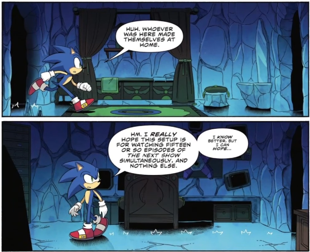 >>559946039>When has Sega/ST ever done what (you) want?Plenty. Not too much recently, but still.>Also, why do Tailsfags think Sonic wasn't doing anything prior to meeting Tails?I took the top panel in more "Sonic is who he always is." Like obviously he was adventuring around before Tails came across him, that's how they meet.>>559946245>picrel
