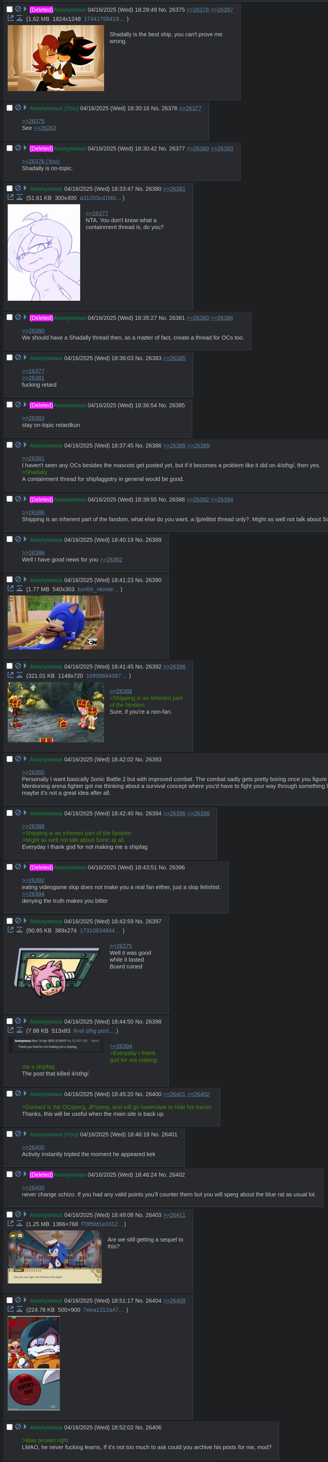 Welcome to Sonic the Hedgehog General! Here we discuss ALL things Sonic!/sthg/ #9142 - Sonic.exe was already referenced in the games Edition==NEWS==>Sonic the Hedgehog's 35th anniversaryhttps://www.sega.com/sonic-the-hedgehog?tab=35th-anniversary>Sonic the Hedgehog 4 to release on March 19, 2027https://x.com/SonicMovie==Comic Release Dates==Sonic the Hedgehog #85 - 11 March 2026Sonic the Hedgehog #86 - 08 April 2026DC x Sonic the Hedgehog: Metal Legion #1 - 06 May 2026Sonic the Hedgehog #87 - 13 May 2026Sonic the Hedgehog x Godzilla #1 - Summer 2026Sonic the Hedgehog: 35th Anniversary Special - 15 December 2026==GENERAL INTEREST LINKS==https://rentry.org/sthglinks>Milestone pastebin:https://pastebin.com/LJCfZhY4>Sonic Game/Mod Recommendation Spreadsheet:https://rentry.org/sthglinks#sonic-gamemod-recommendation-spreadsheet>Perfect System Collection:https://rentry.org/sthglinks#perfect-system-collection>Sonic comic scans:https://rentry.org/sthglinks#comics>Sonic shows:https://rentry.org/sthglinks#shows>SAGEhttps://sagexpo.org/>SHChttps://shc.zone/>#10000 Projecthttps://pastebin.com/Fb8Bt4ru>/sthg/ booru:https://sthg.booru.org/>/sthg/ OC info:https://sthgoc.tumblr.com/archive/>/sthg/ CyTube:https://cytube/r/sthg>/sthg/ Pixel World:https://ourworldofpixels.com/sthgPrevious thread:>>559915006