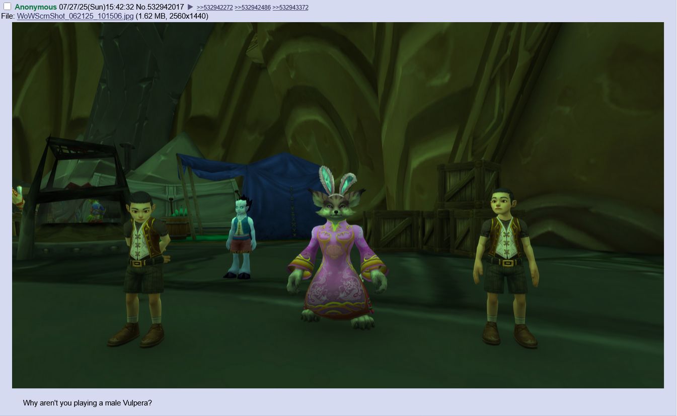 >>559978027>Today, on Azeroth Explorer, we are documenting that rare and grace, but pride species, the Elf (Trollius Azsharian)! Normally living in dimly-lit forested areas, thick with magical environmental saturation, the elf is known for their exquisitely long lifespan, strange culinary habits, complex mating rituals, complex vocalizations, and hunger for flesh!