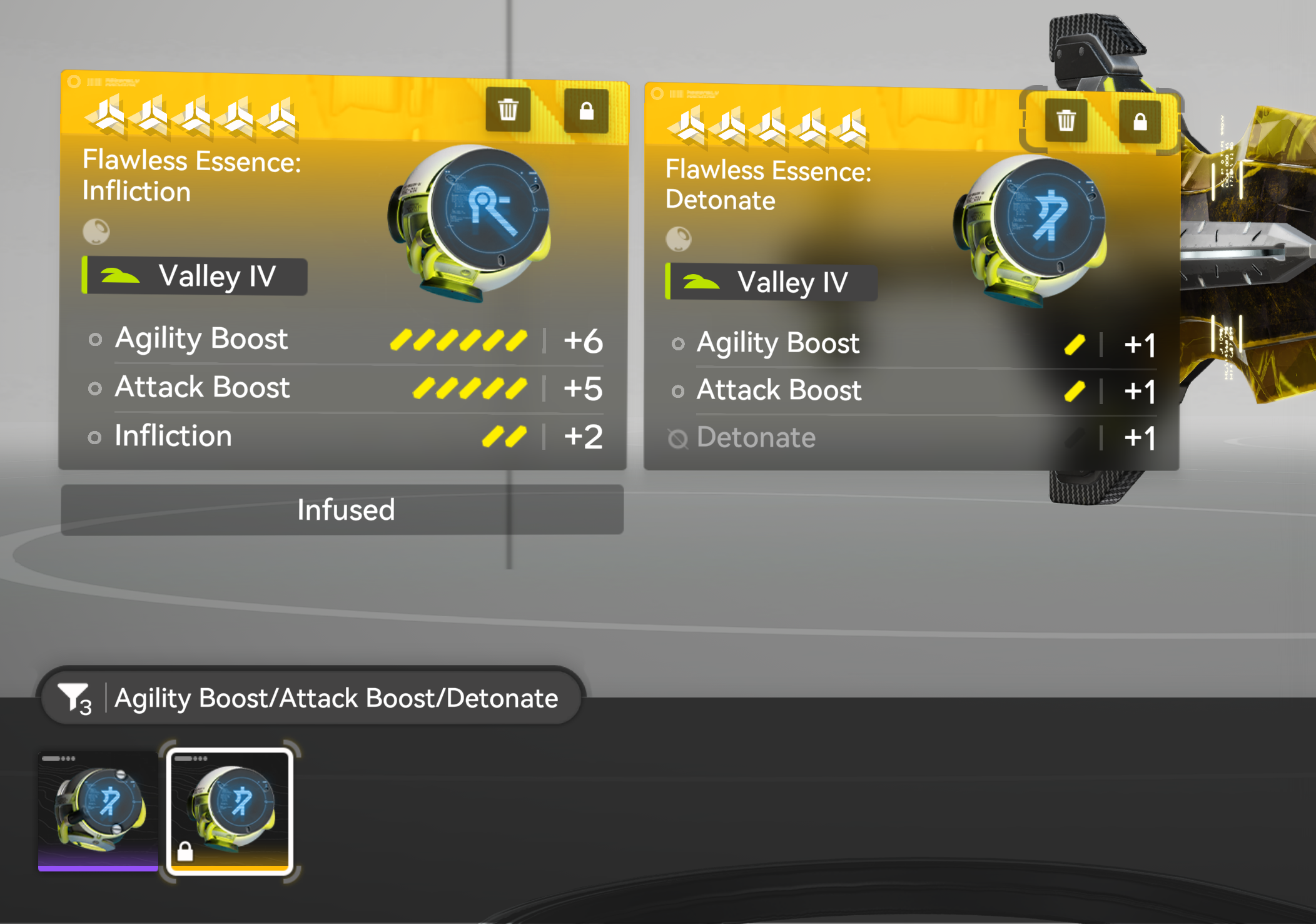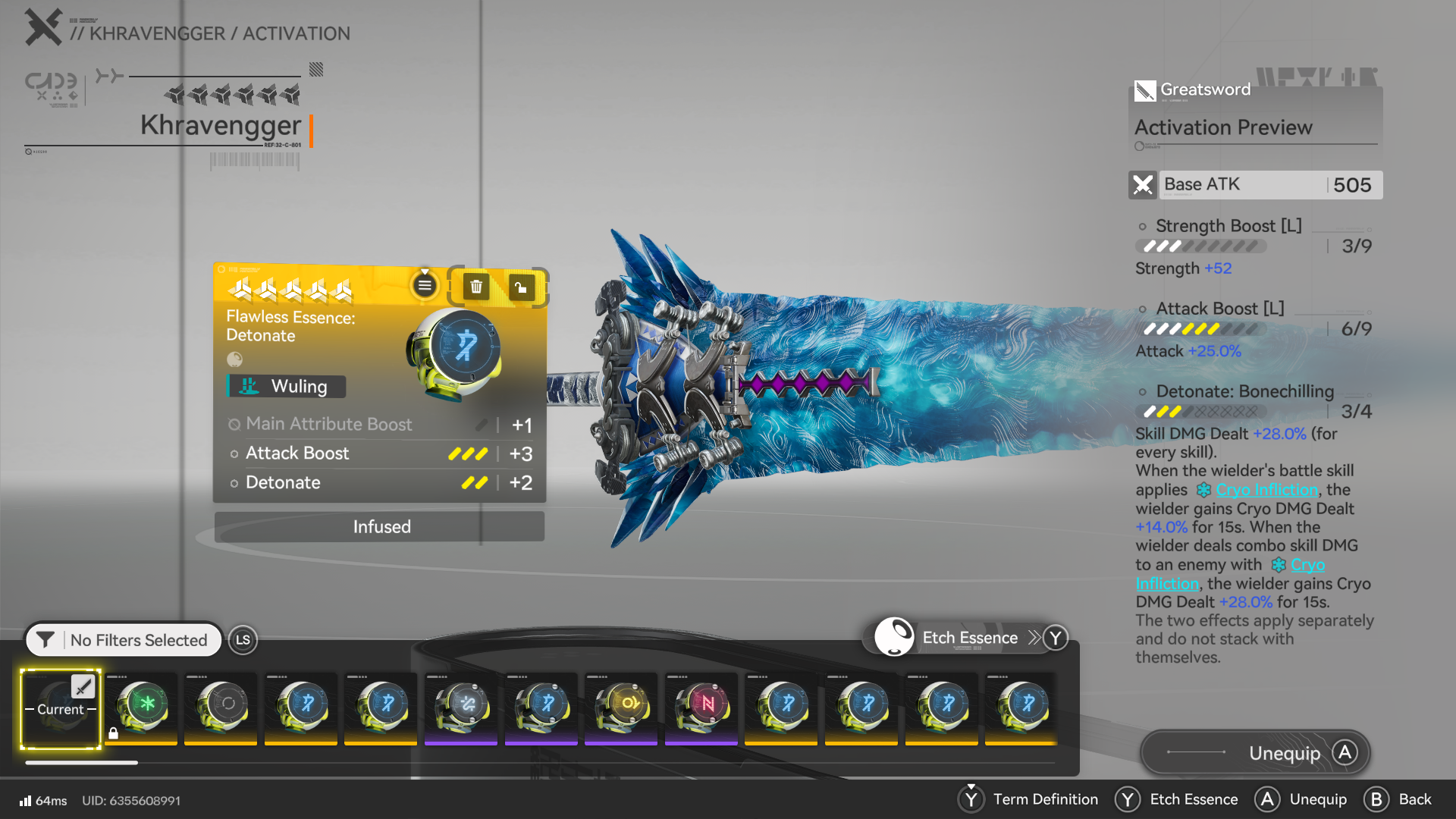 >5 velocitous essences>5 detonation unit essences>0 khravengger essence