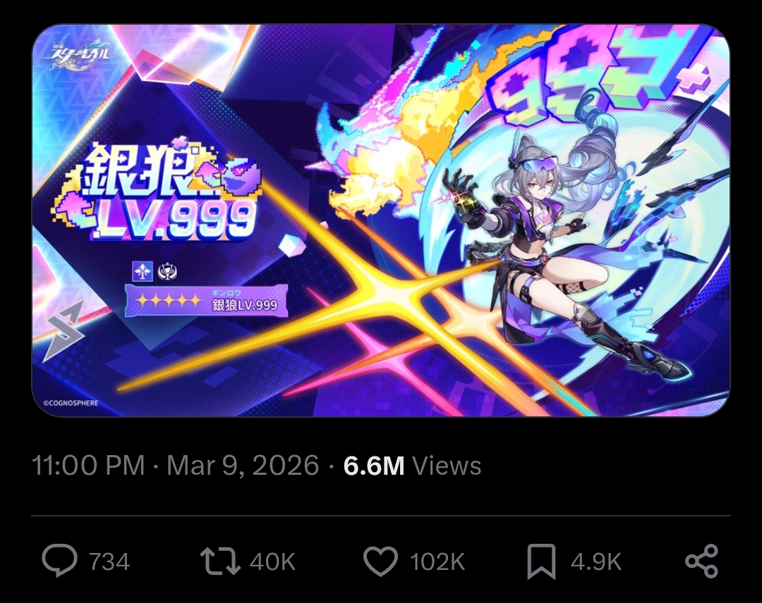 Previous: >>559948008>Version 4.1 "Unraveled for Daybreak" Special Program will be officially released on 2026/03/13 at 19:30 (UTC+8)https://www.youtube.com/watch?v=TgGPAPo02pM https://www.youtube.com/watch?v=H97-304rAxs >Download - https://hsr.hoyoverse.com/en-us/home>4.0 Preview Page - https://act.hoyoverse.com/sr/event/e20260206version-nwlbwa/index.html>Version 4.0 Trailer: "No Aha at Full Moon"https://www.youtube.com/watch?v=2hH0hILcWPs https://www.youtube.com/watch?v=EMT6GmhDiBk >Sparxie Character Trailer: "Ravings"https://www.youtube.com/watch?v=NU6J88t4luM https://www.youtube.com/watch?v=AdUoc-nSB94 >I'll Never Forgive Star Railhttps://www.youtube.com/watch?v=7ia3b_9-znQ https://www.youtube.com/watch?v=gI-W8r-TWUM >Current Character Banners: Sparxie, Yao Guang, Cerydra, Rappa, Sparkle + Pela, Hanya, Qingque - https://www.hoyolab.com/article/44017918>New Drip Marketing:>Silver Wolf LV.999 (5* Imaginary Elation) - https://www.hoyolab.com/article/44129793>Evanescia (5* Physical Elation) - https://www.hoyolab.com/article/44140823>Redeemable Codes - https://hsr.hoyoverse.com/gift4T28RJM4MS3BSub2SparxieMH5KCBGF3AAT45QSTARRAILGIFT>/hsrg/ Tools & Resourceshttps://rentry.org/hsrg-resources-14>/hsrg/ Thread Templatehttps://rentry.org/hsrg-thread-template-14