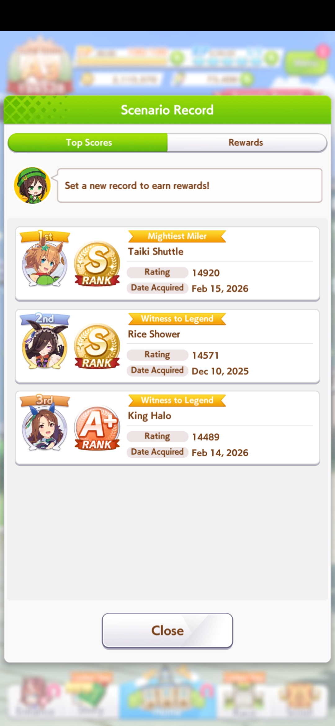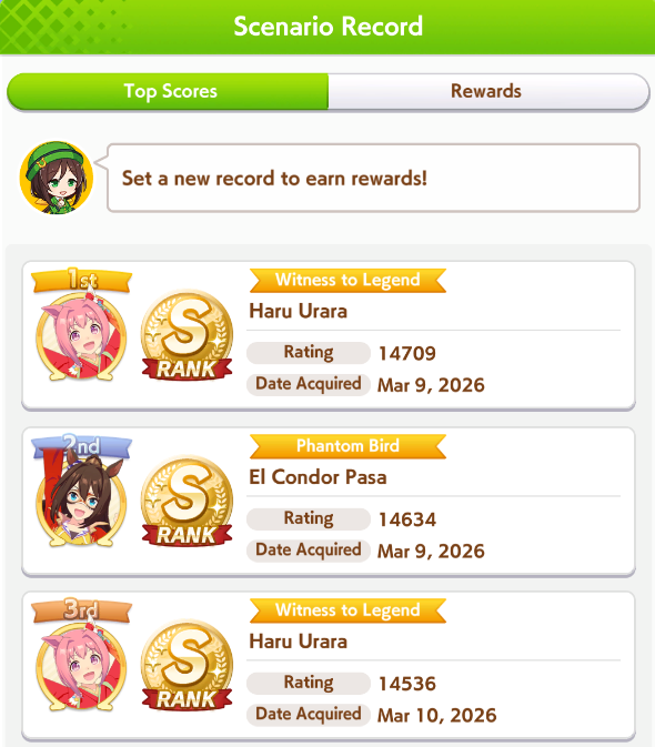 Scenario ends soon, post your record umankos by tapping the scenario record details.