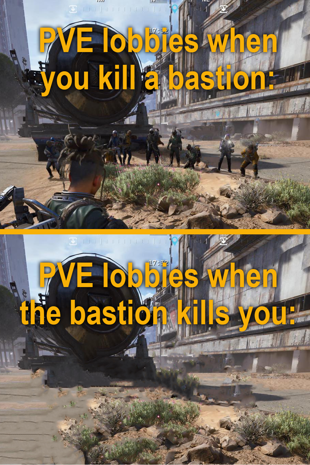 >totally carebare lobbies>shoot one guy mistaking him for a pvp player but clearly wasnt after some negotiation>empty my loadout and queue in knowing the pain next>last three rounds end with me getting gangked and dying in 2 secondsI genuinely do not see what people find enjoyable about pvp in this game. It's dog shit. I just want to fight robots. The people who kill me just die themselves and no one has much fun because it's all getting shot in the back by whoever shot first. At least with teams I see some tactics and leeway. Solo pvp is a madman's TDM with shittier spawn times.