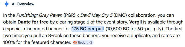 >>560074145For the sake of context pulling a character in PGR costs 15k BC, Dante and Vergil cost 10.5k BC (30% discount), and for the first 2 copies you would get an extra one.
