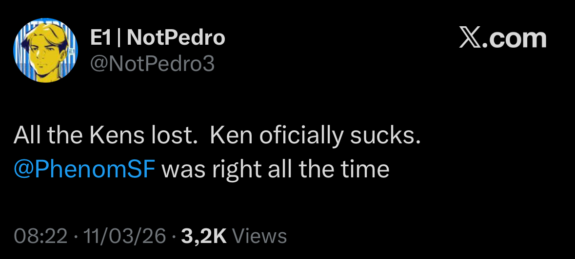 Ryu is officially honest. And I thought Blanka was a top tier?