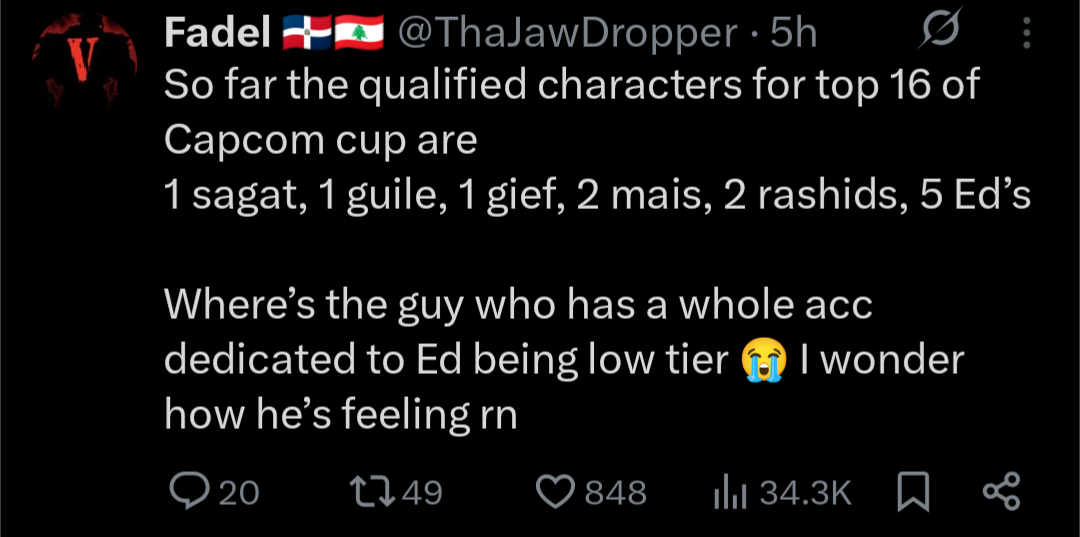 >>559982005>destroys his entire region with minimal effort every year>pulls up to capcom cup for the all expenses paid vacation>mogs smelly incels with his photoshoot>plays a couple fun games of street fighter >shoots the shit with pros >leavesis there a more based player?