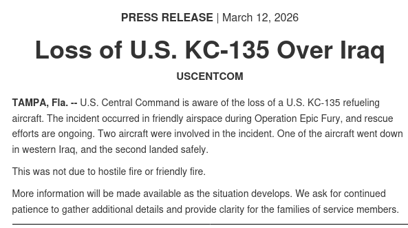 >>560159051"I think the USG Department of War is not being entirely truthful about recent losses in Operation Epic Fury"