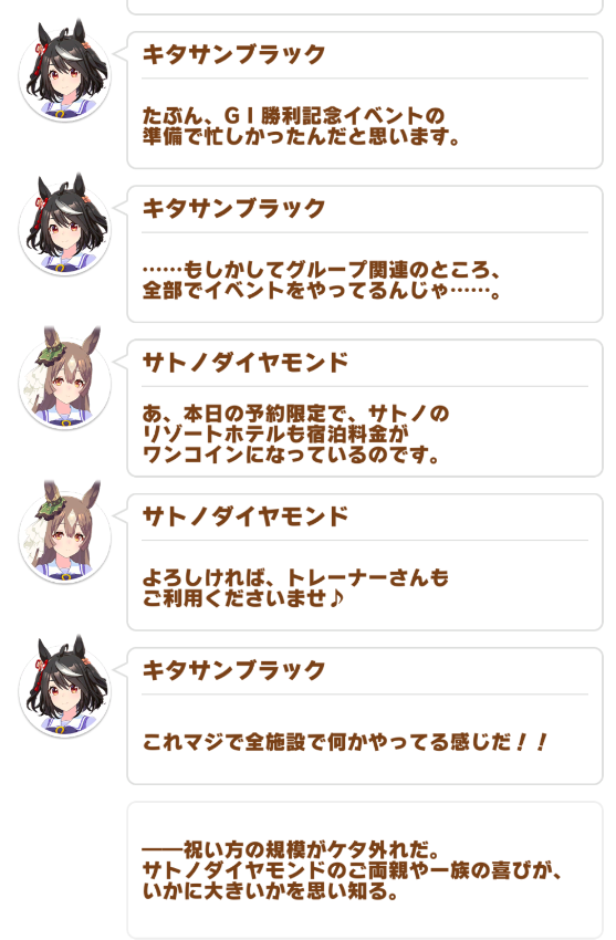 >Win g1 with diachan>Satono family rents out several restaurants, arcades and a fucking resort to celebrate