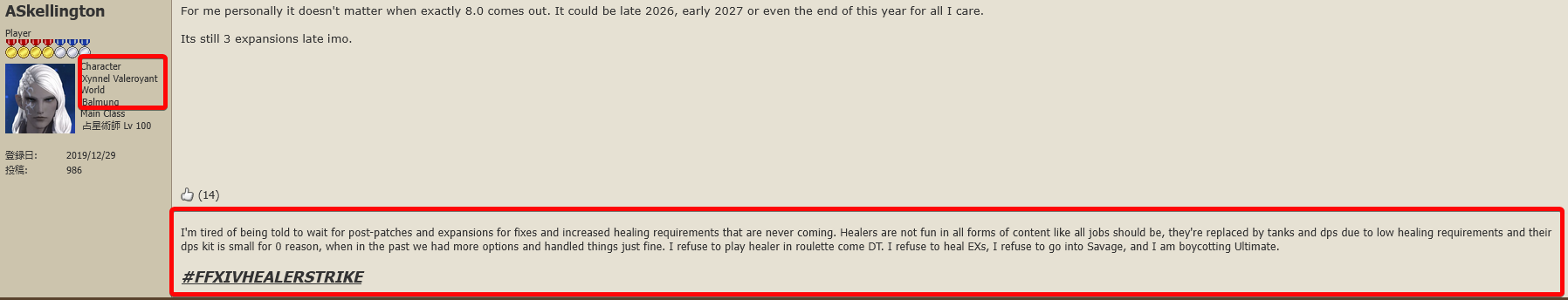 >>560023675Because this is the type of people who complain constantly.>Noooo I have to enter a duty and stop jerking off to get shiny things I want!!!!!>They should just give it to me for free so I can have it when I login!!!!!!!>Balmung>#FFXIVHEALERSTRIKE>Complaining about the game non-stop>Highest content on their entire account is a fucking normal raid from 2 expansions ago>But they shan't be queing into DT roulettes despite not queing into EW anything Actually insane they listen to the feedback from these people.