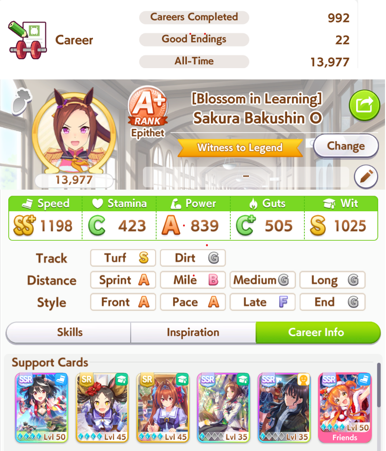 >i'm the only player in my lobby with an uma higher than a+ rank (my falco and oguri are s rank, my smaru is s+)>race start>both falco and smaru late start and don't trigger groundwork, oguri doesn't get the gamble as backup>2ndThis is the tenth CM in a row where I've made Graded A League Finals and the tenth in a row that I've not won, I'm on a cosmic level of bad luckWhat am I supposed to do at this point