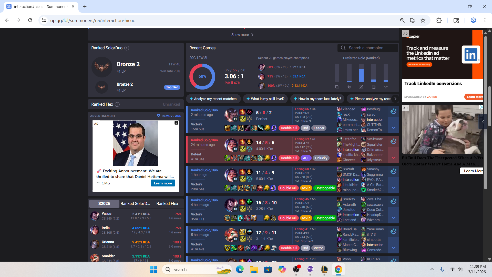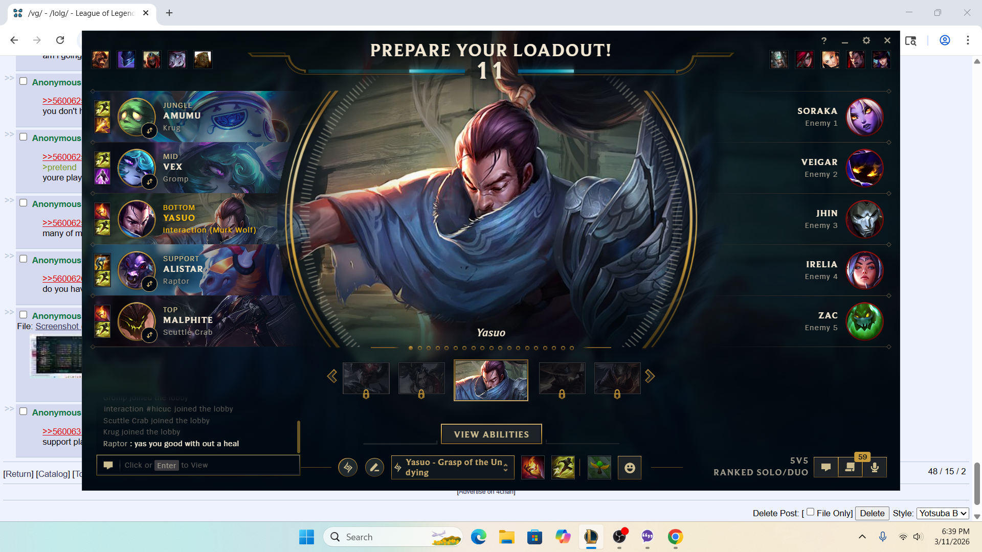 >>560058076POST OPGG QUICK. IF YOU'RE GONNA TYPE THIS GARBAGE YOU BETTER SHOW OPGG LET'S SEE THIS """"HIGH ELO""" THAT YOU'RE SPEAKING OF