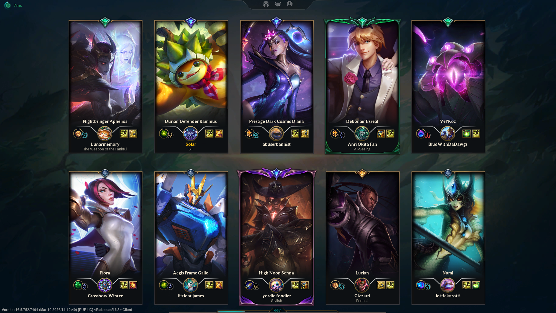 >>560066217seraphine aurora lilia briar zoe nami sona soraka kindred