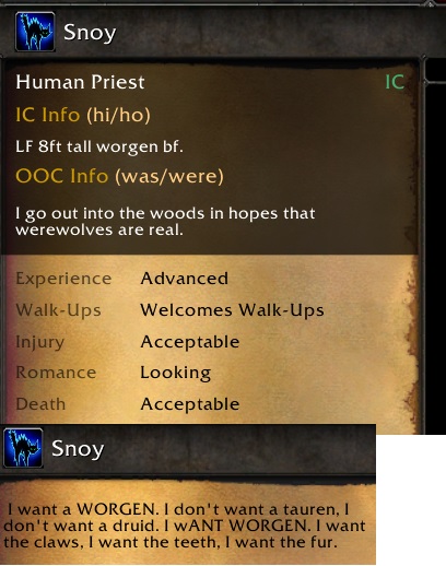 I saw a Branded member in the wild and they started whispering me their knotting and worgen fetishes.