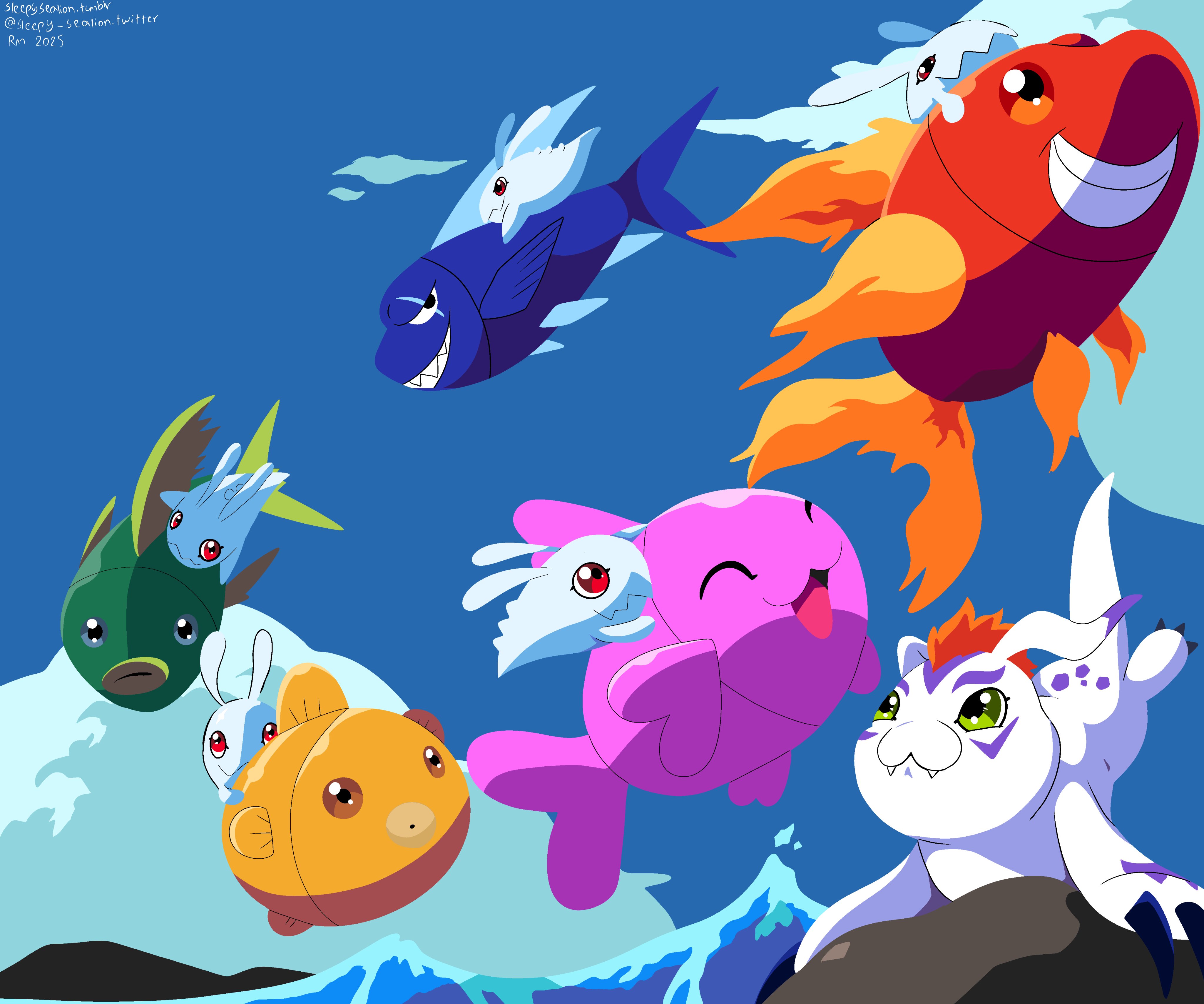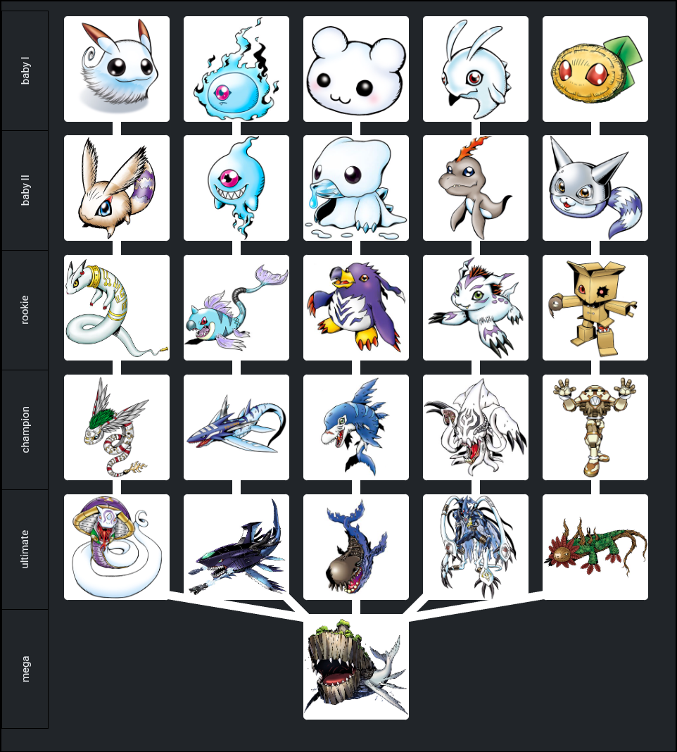 A brown sea mammal line leading to Olegmon could work.