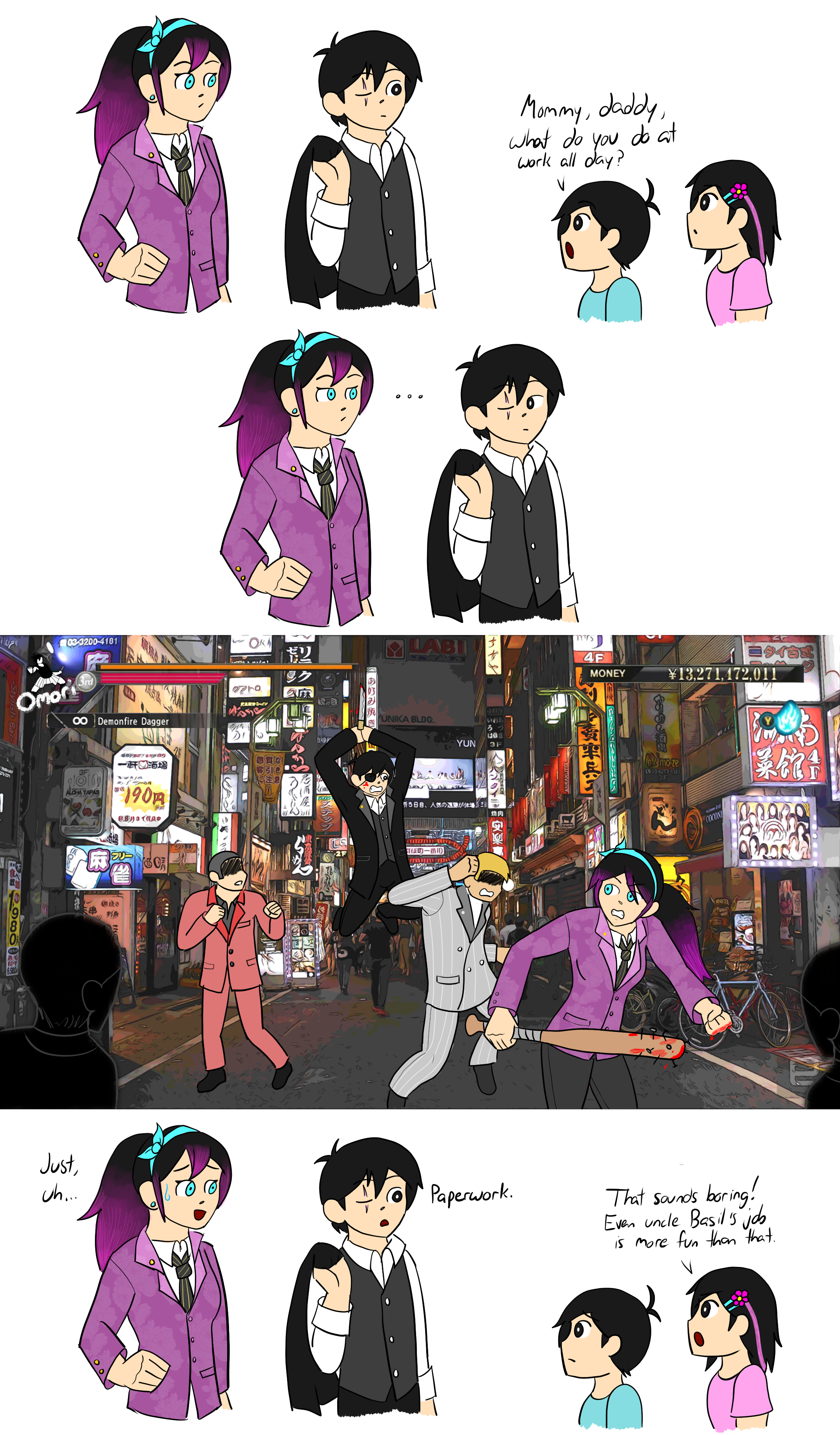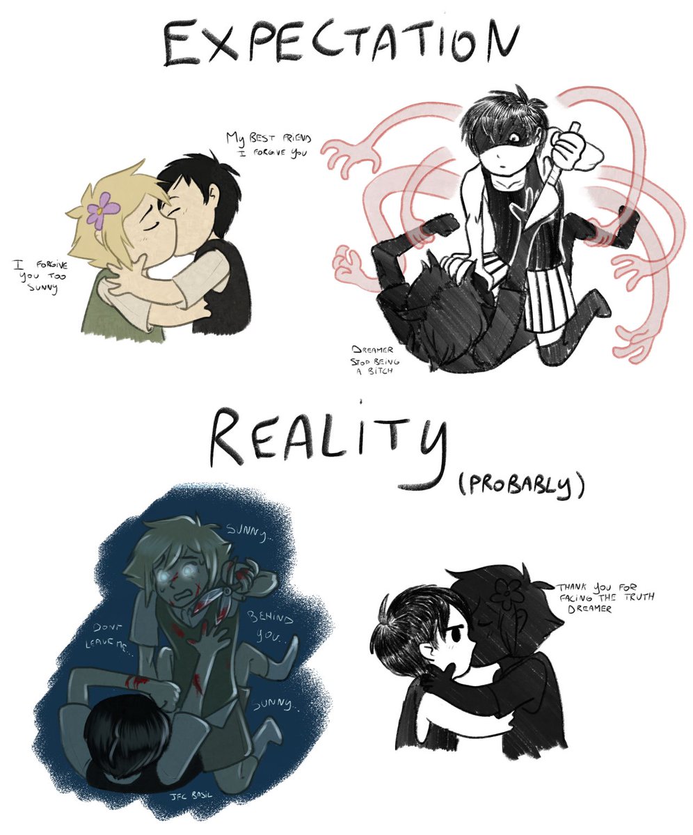 >>560119462I agree, and I also feel like that's a consequence of stories that feel like they need a villain/bad guy of sorts. Some kind of antagonistic force to push the story forward. It works in Headspace, but is strange in Faraway/the real world. I don't even really agree with having Omori be a villain when he's more of an antagonist by nature.I feel like having Sunny's Mom be depicted as awful is to some extent a means to an end. Getting Sunny away from the only person who could take him away from Faraway so he doesn't have to move and can stay with his friends. And for what it's worth, I feel like this perspective on Sunny's Mom faded quite a bit over time.
