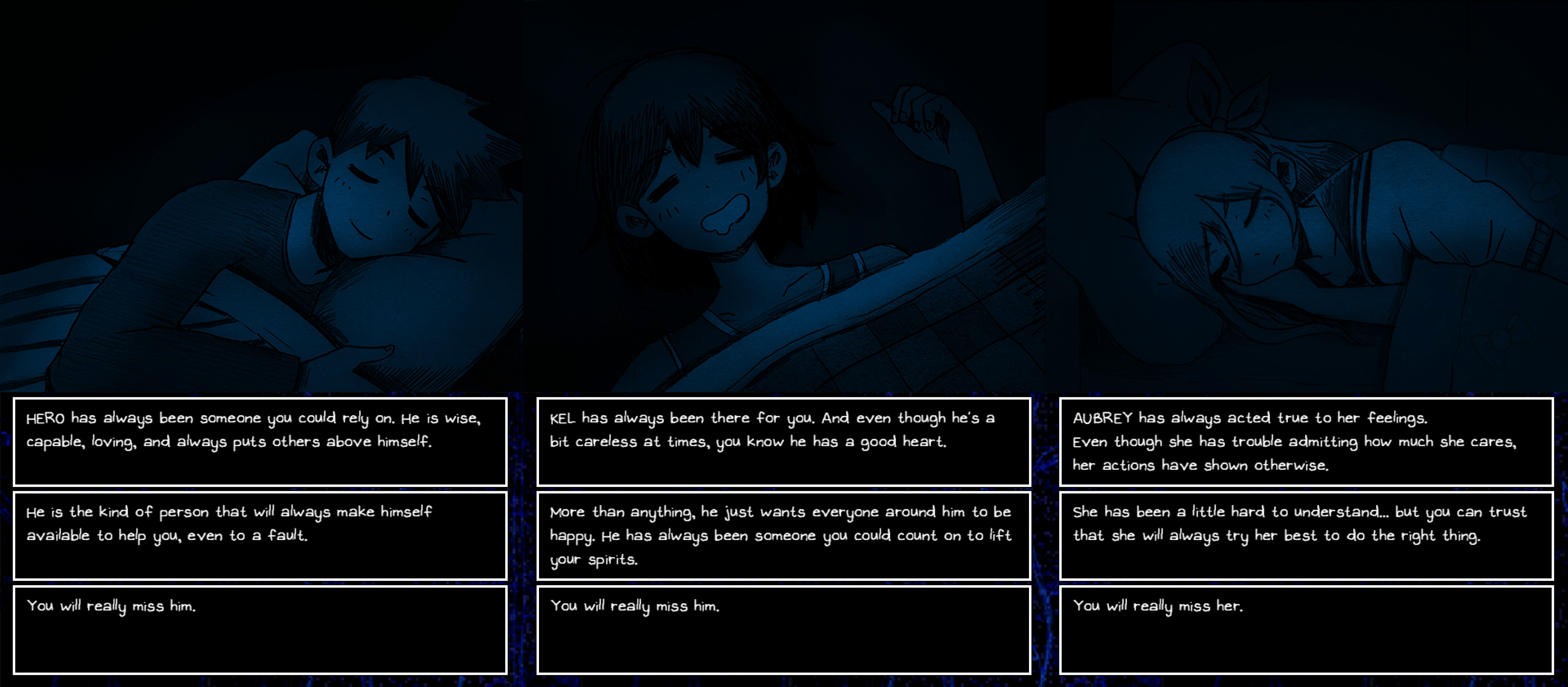 I just got to the ending for the first time and don't know what to do with myself now. I wasn't ready for them to go