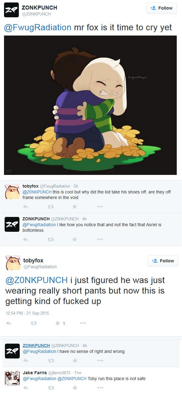 >>560161729No, it's true. Chara says she considers Sunny "one of the good ones".>>560169778He is blissfully oblivious to the horrors of life.
