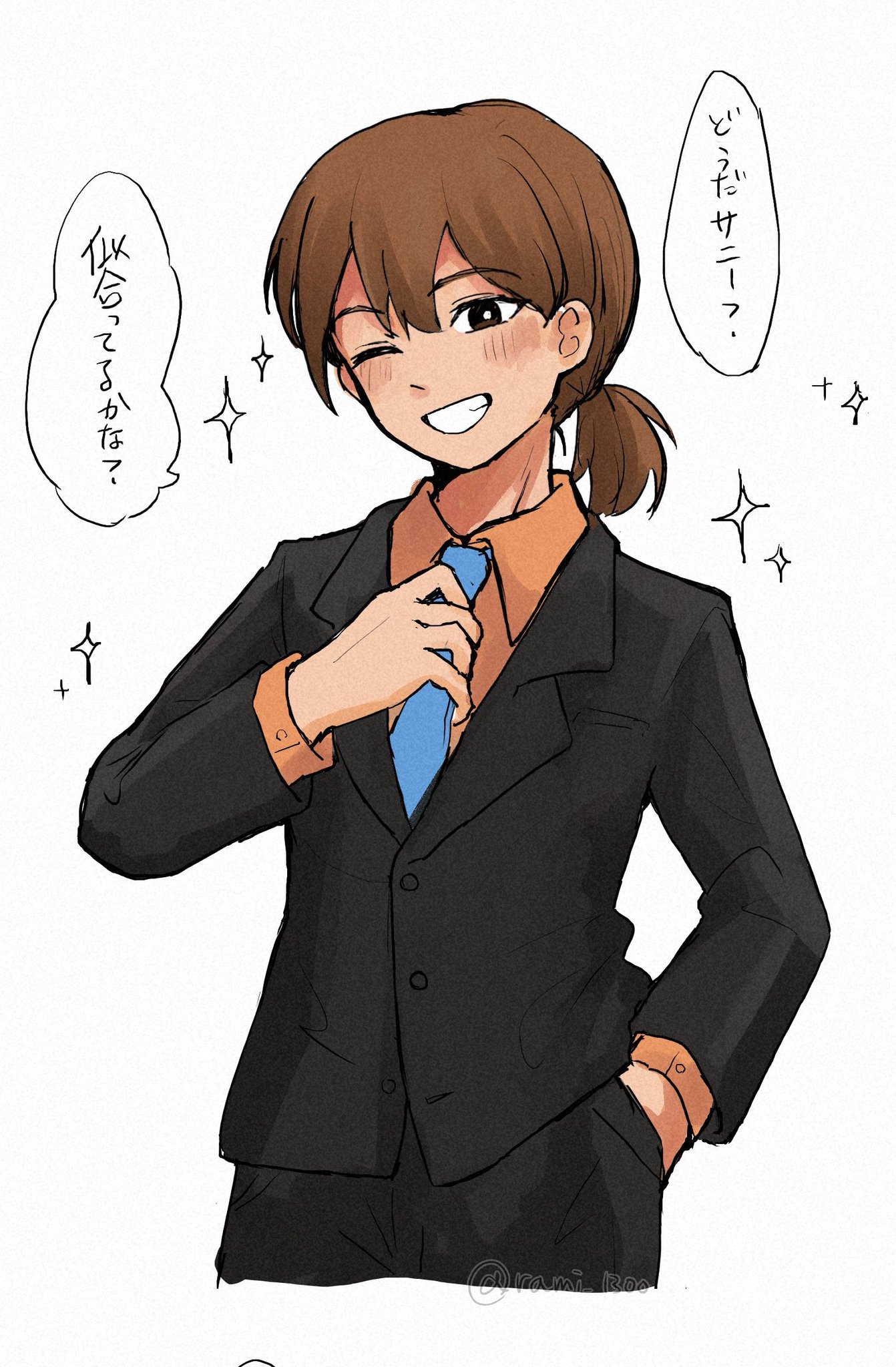 >>560256001>Heh…>You look cool.>Hehe, thanks! As expected of me. I’m gonna go show it off!”