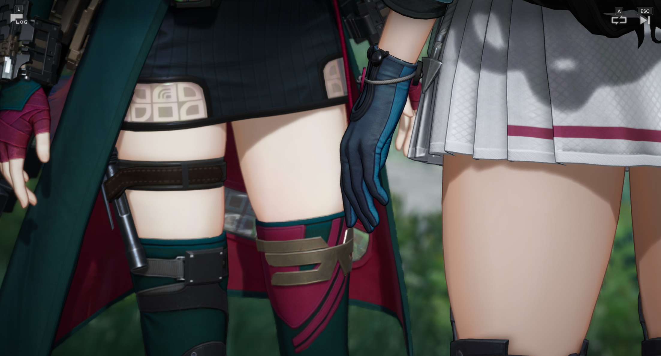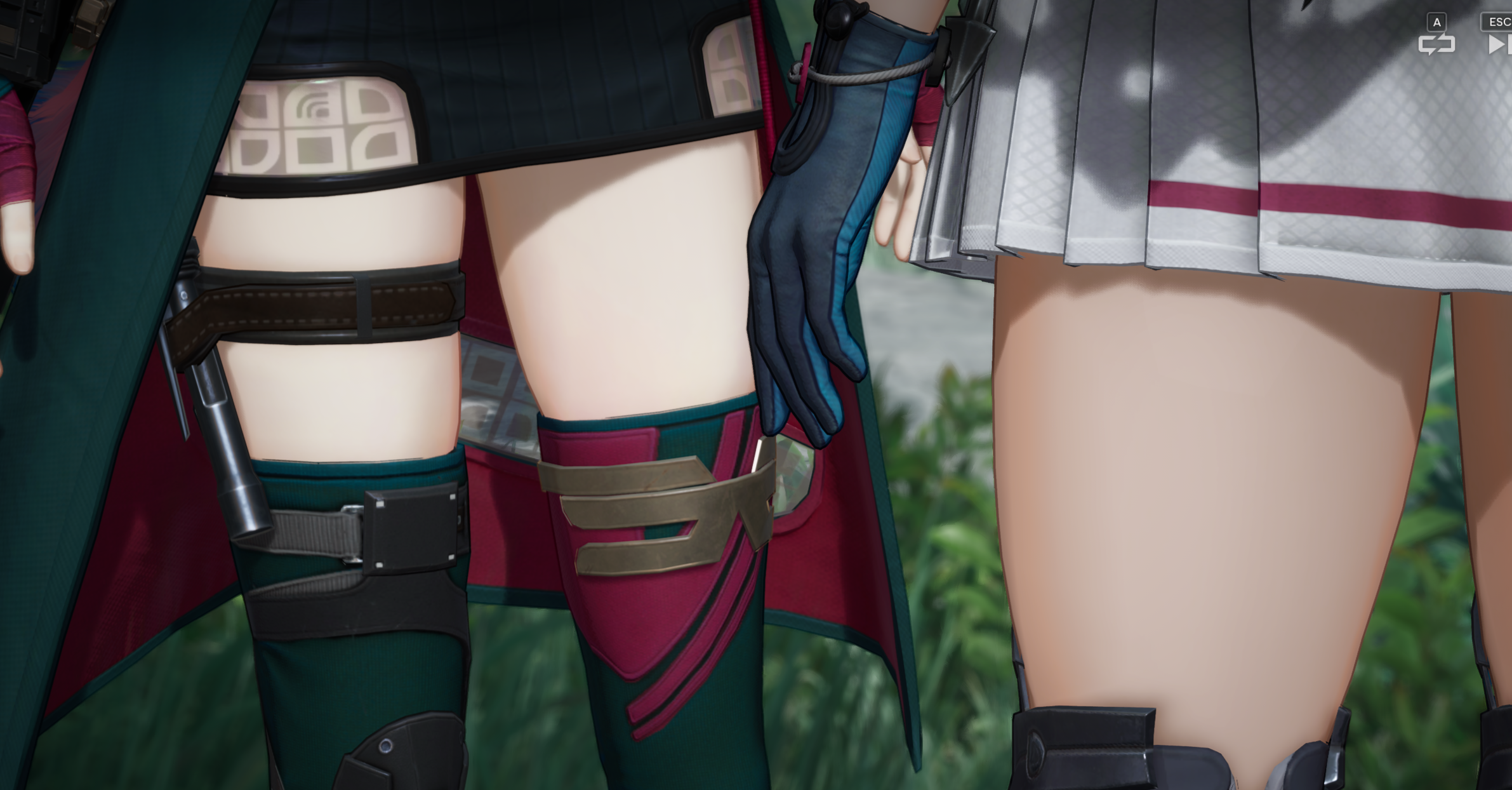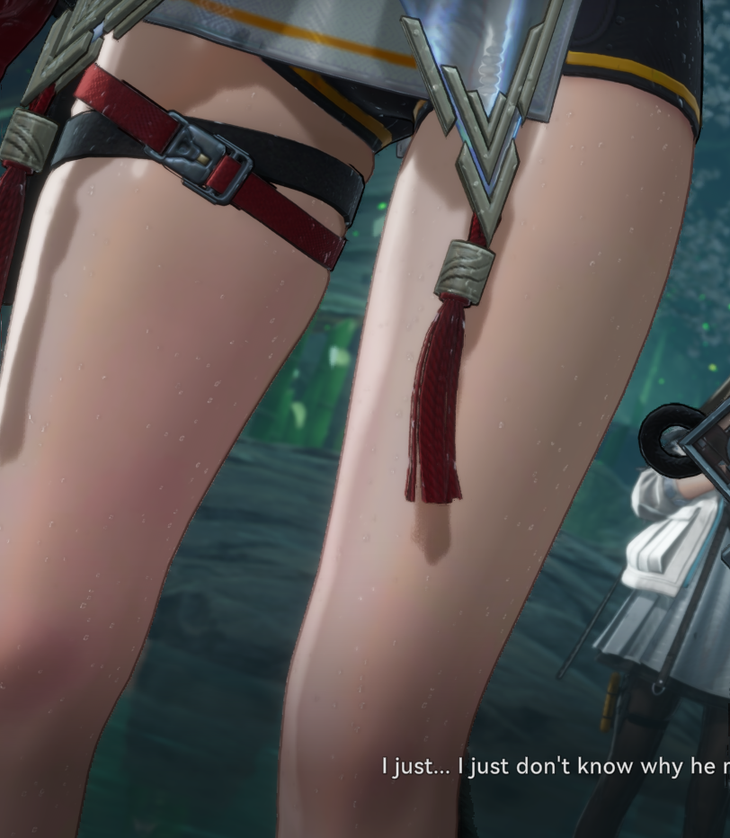 What is the purpose of the camera focusing on their exposed thighs