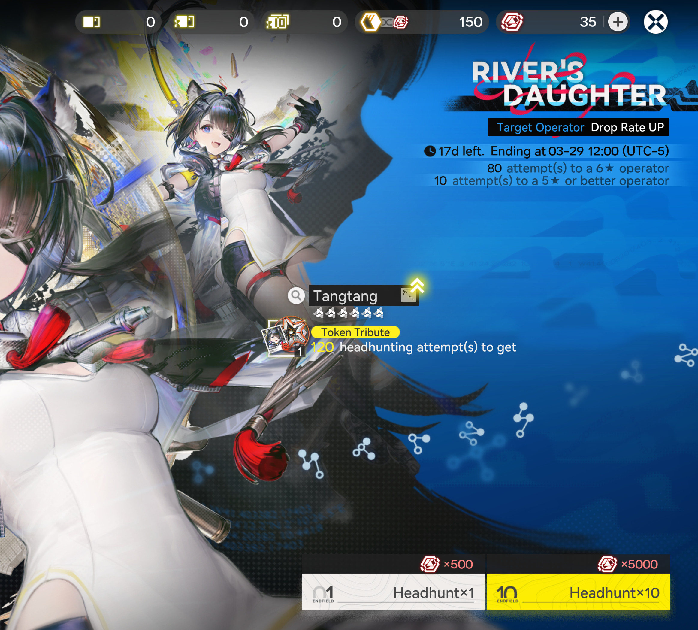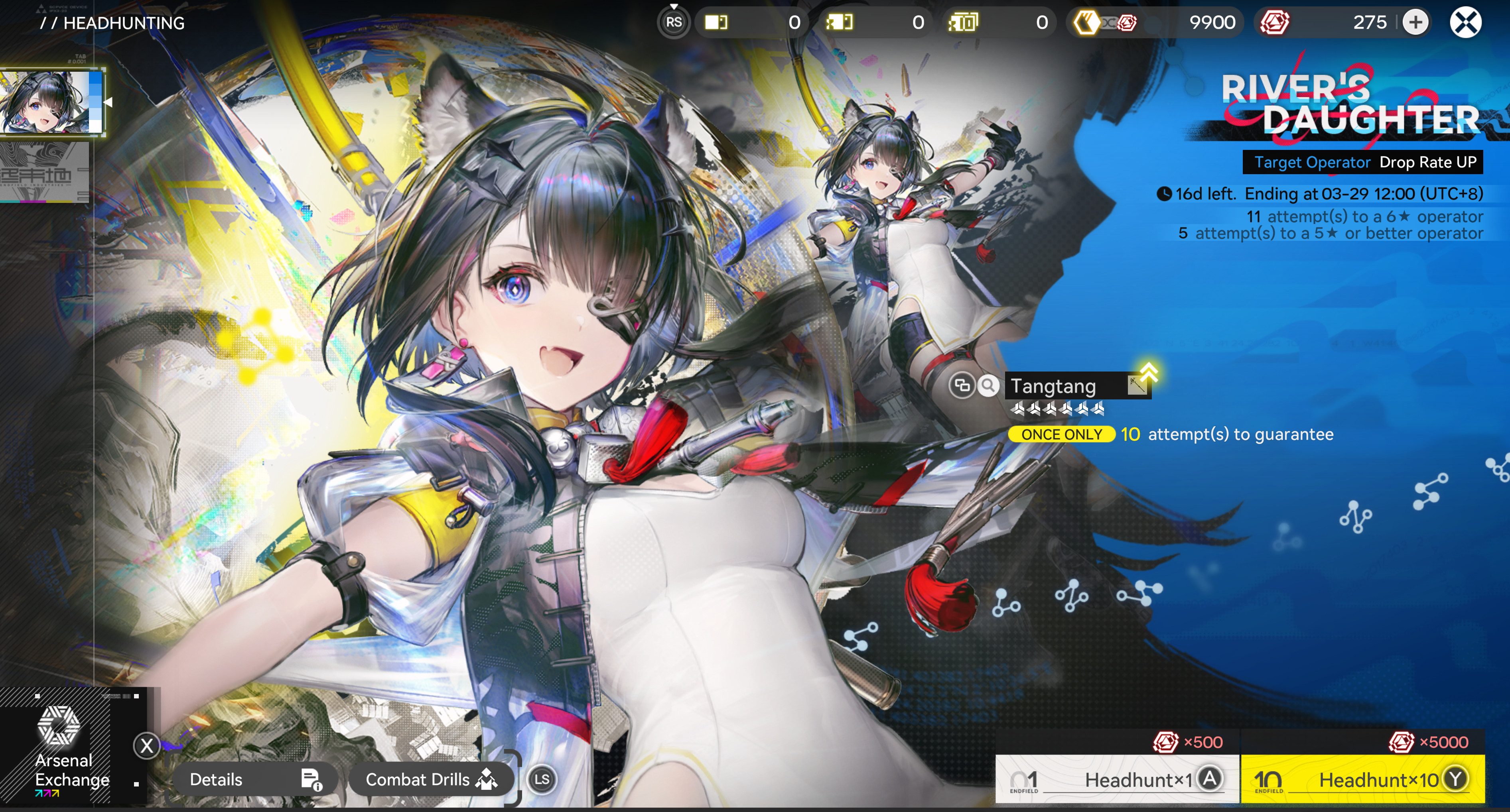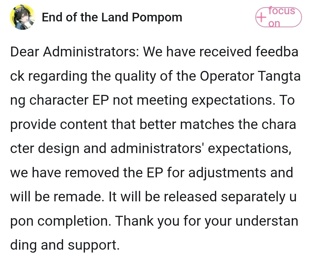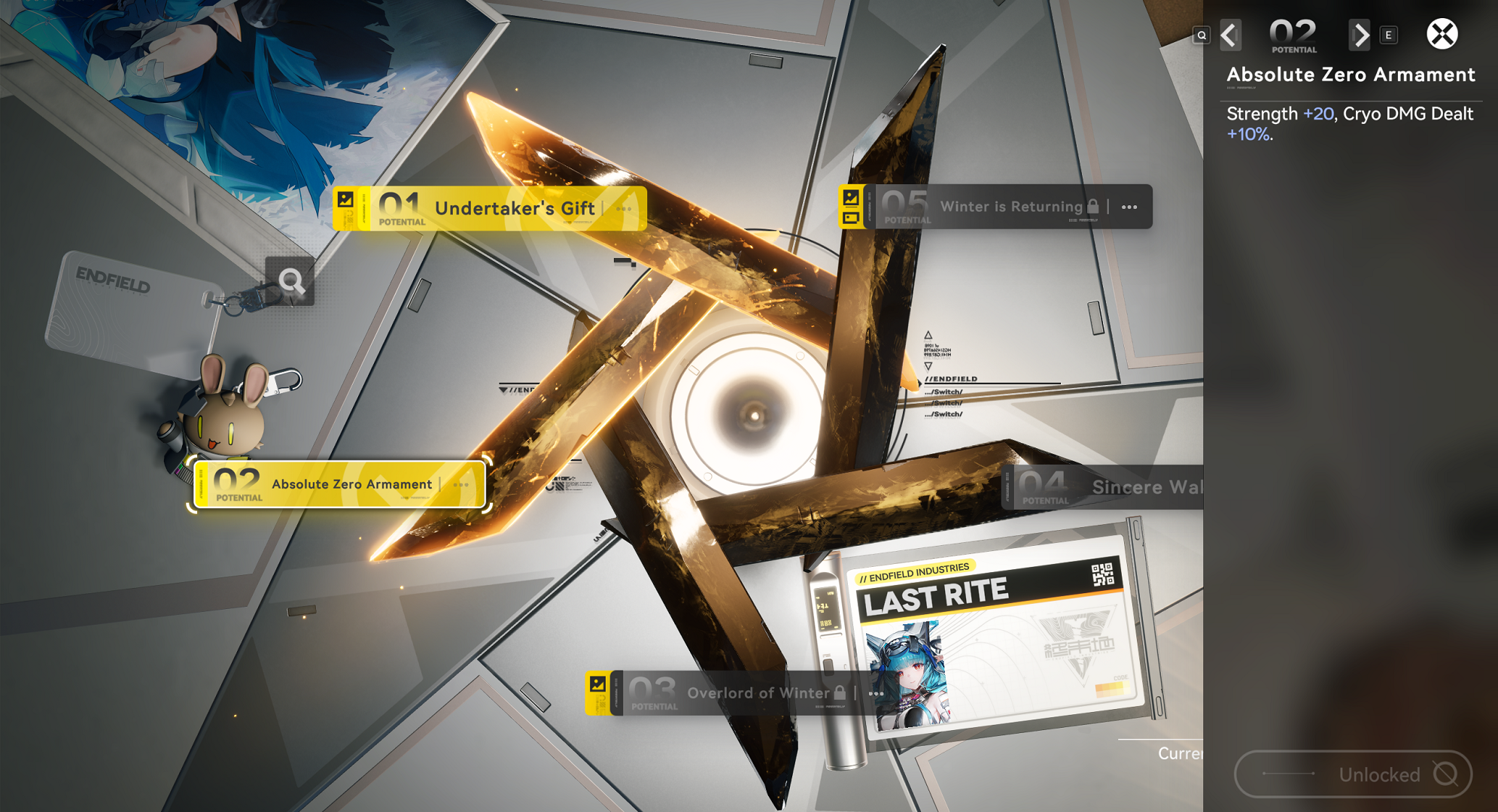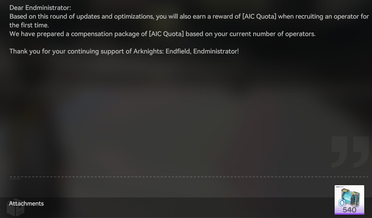 Previous thread: >>560065146>"Old Deep Water Dies, by Rising Tide It Is Denied"[YouTube] Arknights: Endfield [Old Deep Water Dies, by Rising Tide It is Denied] Version Trailer (embed) [Version Trailer][YouTube] Arknights: Endfield Dev Log | Optimization Progress & Version Preview now live. (embed) [Dev Log Stream]>Official Websitehttps://endfield.gryphline.com/en-us>Official EN X (News)https://x.com/AKEndfield>DEV Comm (Developer Updates)https://endfield.gryphline.com/en-us/news/2662>Tangtang PVs[YouTube] 『アークナイツ:エンドフィールド』オペレーター戦闘紹介 - タンタン (embed)[YouTube] Arknights: Endfield Operator Combat Demo: Tangtang (embed)>Chartered Headhunting ScheduleMarch 12th to March 29th --- "River's Daughter", (Tangtang)March 29th to April 14th --- "Wolf Pearl", (Rossi)ENDED --- "Hues of Passion", (Yvonne)>SKPORT Daily Sign-inhttps://game.skport.com/endfield/sign-in?header=0&hg_media=skport&hg_link_campaign=tools>Twitch Dropshttps://endfield.gryphline.com/special/third-party-binding?channel=twitch>Reward CodesDACHIEFSEESUIMAWAVERIDAH>Wikishttps://wiki.skport.com/endfield (Official)https://perlica.moehttps://warfarin.wiki/enhttps://endfield.wiki.gg/>Blueprint Guideshttps://talospioneers.com/en>Stickershttps://drive.google.com/drive/folders/13KH3L6QPIKkVH7pBddv4uxwmwJsnOtklhttps://drive.google.com/drive/folders/1OuVtjv1k-9c3M6n7d4PX3CGG5bkwH04ahttps://drive.google.com/drive/folders/1AStB8bzFk3lSwMwczWPkFYCBrZe0vHOghttps://drive.google.com/drive/folders/1yS0lqUhxf8tBRtpDFfCU1y16IS2sSeF7>Fri/end/sSubmit your info, /end/min:https://forms.gle/Fo7BhZMKaKqiWyL19View other /end/mins:https://docs.google.com/spreadsheets/d/1YtxiDss0hgEQhLlZgpfzyGrJrzUcqDzOS9T6IH-BiVc/edit?usp=sharing