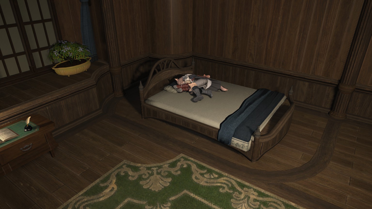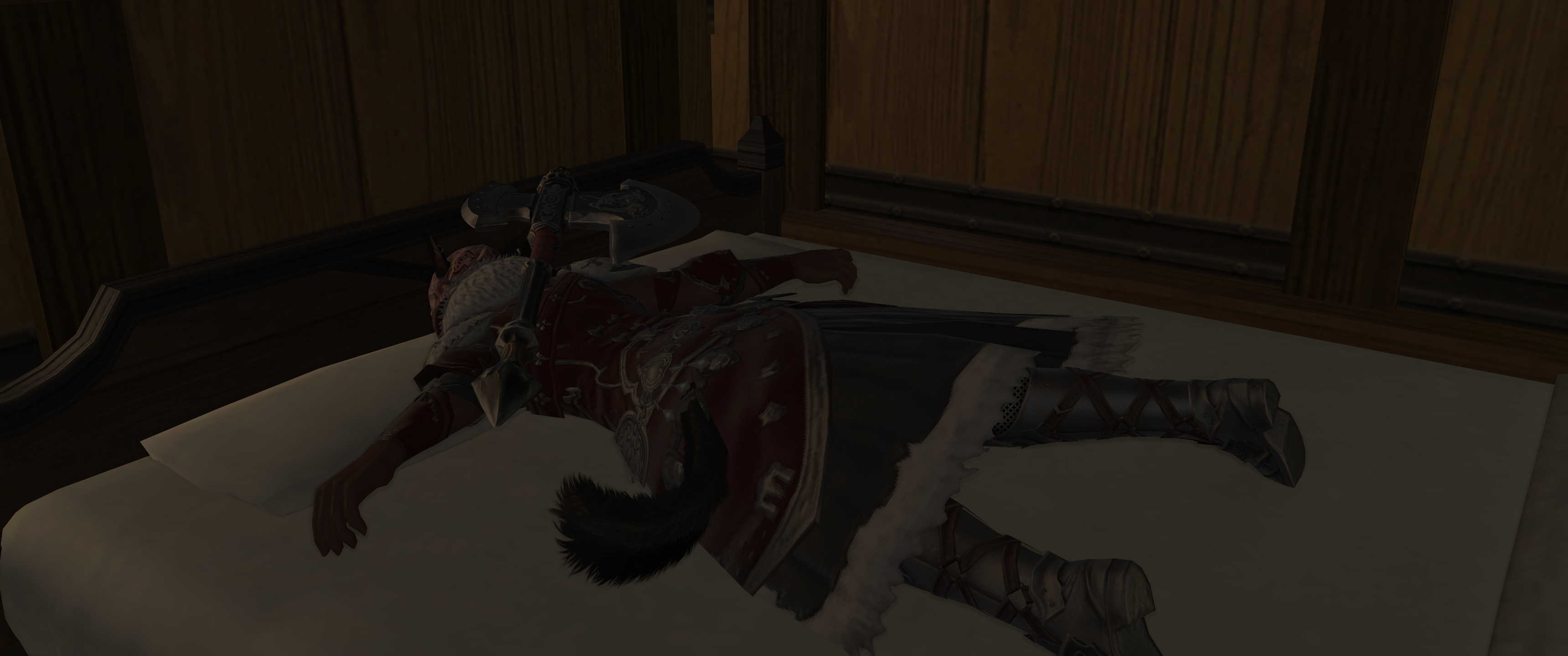 I am having a really terrible day and am now going to try to fall asleep while fantasizing about cuddling with a hrothgal who accepts me despite my flaws in ff14.