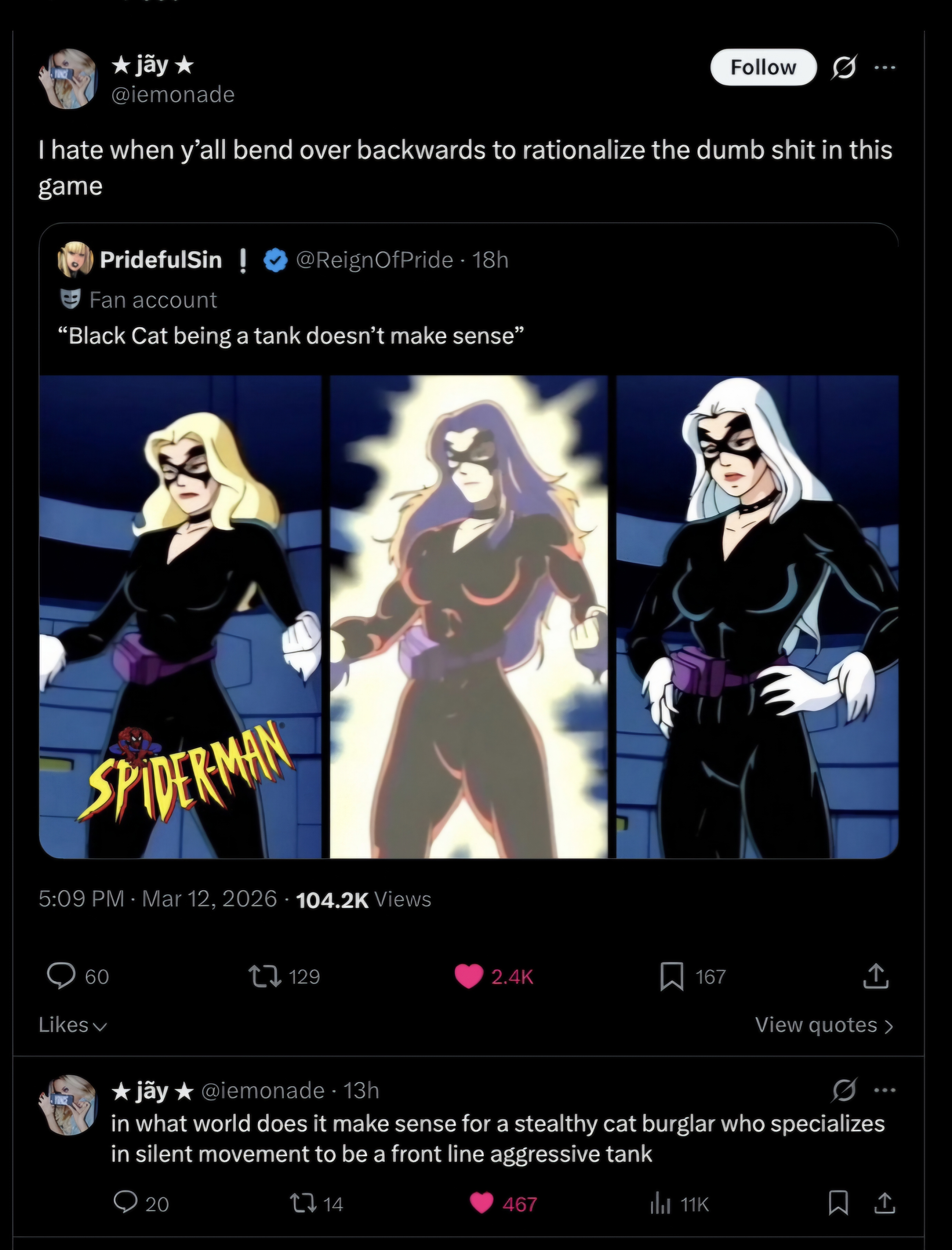 Felicia being fuck huge is going to make spiderfags mad but them still being big and greedy they'll probably just demand MJ get added so they get a more trad waifu.