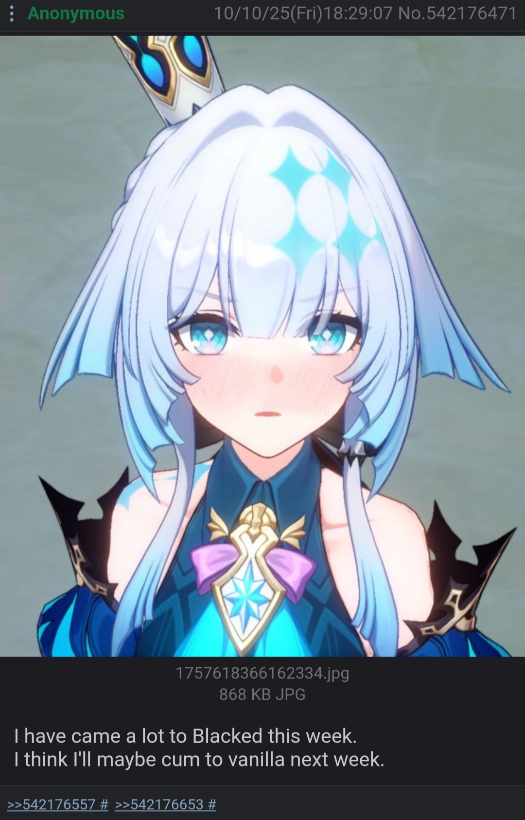 Previous: >>560085883>Version 4.1 "Unraveled for Daybreak" Special Program will be officially released on 2026/03/13 at 19:30 (UTC+8)https://www.youtube.com/watch?v=TgGPAPo02pM https://www.youtube.com/watch?v=H97-304rAxs>Download - https://hsr.hoyoverse.com/en-us/home>4.0 Preview Page - https://act.hoyoverse.com/sr/event/e20260206version-nwlbwa/index.html>Version 4.0 Trailer: "No Aha at Full Moon"https://www.youtube.com/watch?v=2hH0hILcWPshttps://www.youtube.com/watch?v=EMT6GmhDiBk >Sparxie Character Trailer: "Ravings"https://www.youtube.com/watch?v=NU6J88t4luMhttps://www.youtube.com/watch?v=AdUoc-nSB94>I'll Never Forgive Star Railhttps://www.youtube.com/watch?v=7ia3b_9-znQ https://www.youtube.com/watch?v=gI-W8r-TWUM >Current Character Banners: Sparxie, Yao Guang, Cerydra, Rappa, Sparkle + Pela, Hanya, Qingque - https://www.hoyolab.com/article/44017918>New Drip Marketing:>Silver Wolf LV.999 (5* Imaginary Elation) - https://www.hoyolab.com/article/44129793>Evanescia (5* Physical Elation) - https://www.hoyolab.com/article/44140823>Elation Trailblazer (5* Lightning Elation) - https://www.hoyolab.com/article/44152517>Redeemable Codes - https://hsr.hoyoverse.com/gift4T28RJM4MS3BSub2SparxieMH5KCBGF3AAT45QSTARRAILGIFT>/hsrg/ Tools & Resourceshttps://rentry.org/hsrg-resources-14>/hsrg/ Thread Templatehttps://rentry.org/hsrg-thread-template-14