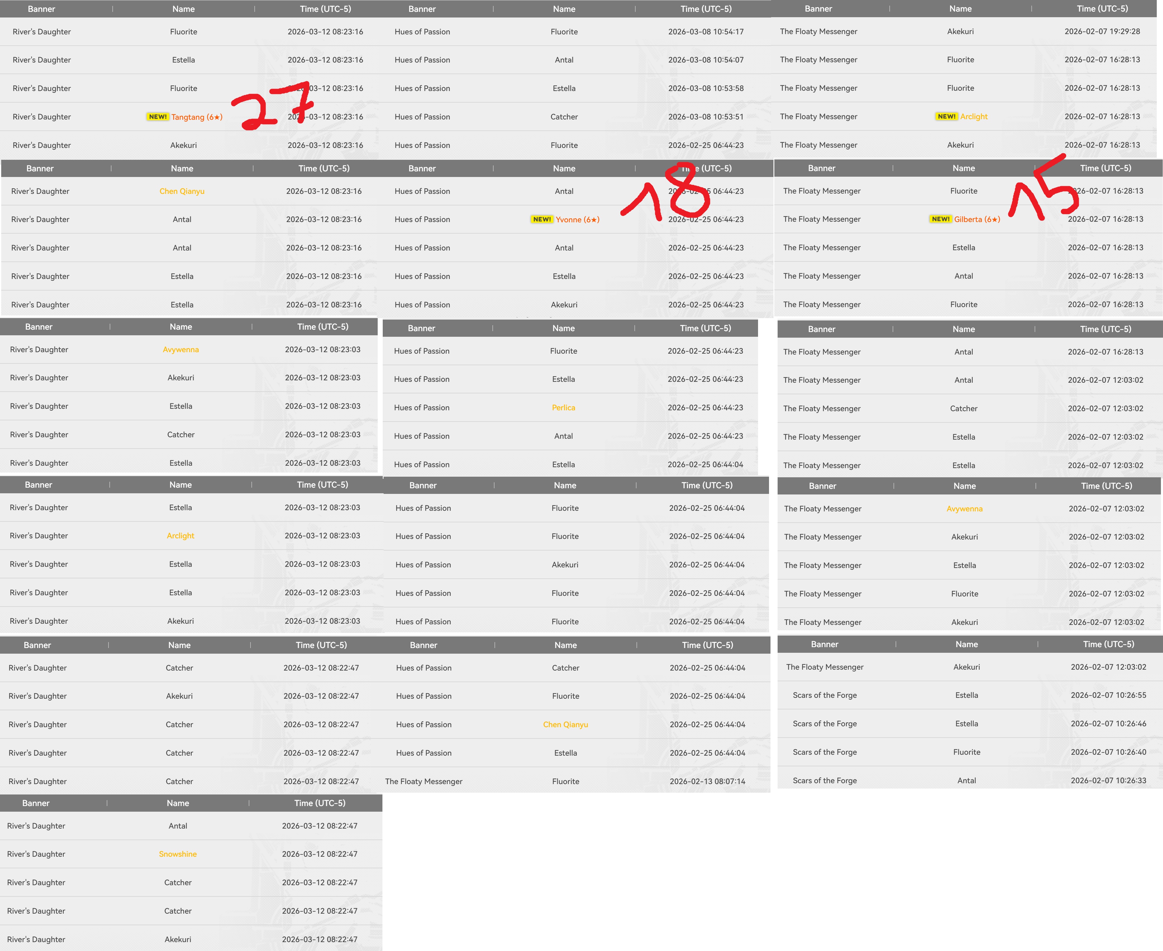 >>560098315This thing carries over and it resets after you get a 6*, I got tangtang by using the free 10 roll from the previous banner