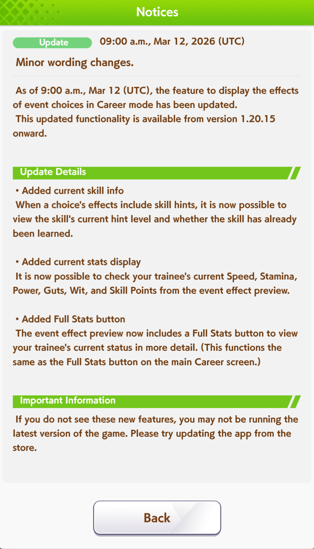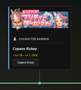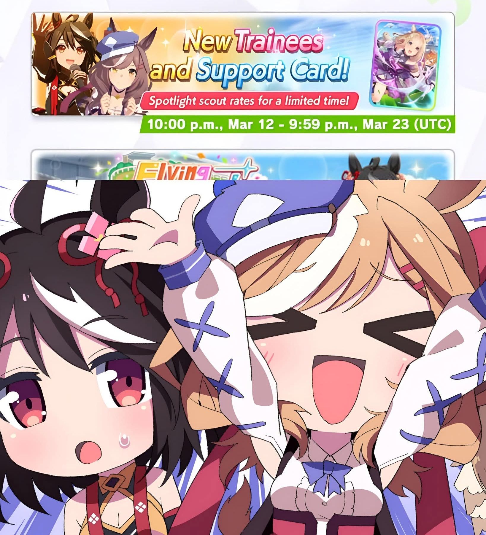Previous: >>560096739>Global Game NewsLink your account to Cygames iDCurrent Scenario: Aoharu Hai aka "Unity Cup"Current Rate Up Trainee: Admire Vega (3*)Current Rate Up Support Cards: Kawakami Princess (Speed), Fine Motion (Wit)Current CM: Aquarius Cup - Tokyo Dirt 1600m03/02 - 03/12 - Aquarius Cup - Tokyo Dirt 1600m Left/Winter/Sunny/Firm03/02 - 04/14 - Halved TP Cost & 2x Career Mode Rewards03/02 - First Anniversary Part 103/05 - Admire Vega (3*), Kawakami Princess (SSR), Fine Motion (SSR)03/12 - First Anniversary Part 203/12 - Kitasan Black (3*), Matikanetannhauser (2*), Narita Top Road (SSR)03/12 - Flying Run-Up! Story Event03/12 - Trackblazer Release date03/22 - Satono Diamond (3*), Curren Chan (SSR), Marvelous Sunday (SSR)03/23 - First Anniversary Part 403/23 - Agnes Tachyon, Narita Taishin, Narita Brian legends races03/26 - First Anniversary Part 403/26 - Mejiro Bright (3*), Curren Chan (SSR), Zenno Rob Roy (SSR)03/26 - 04/05 - Pisces Cup - Long/Right/Spring/Heavy/3200https://umamusume.com/news/100040/https://pages.snep.pw/uma/anni-skill-changes/>JP Game NewsCurrent Rate Up: Almond Eye (3*), Loves Only You (3* alt), SSR Forever Young, SSR Casino Drive, SSR Marche LorraineNew Scenario "Beyond Dreams" releasedTimeline: https://uma.moe/timelineCygames Webstore: https://webstore.cygames.com/en/umamusume_en/>Thread Clubshttps://rentry.co/umaglobalclublistYou must be E3 (20k points) to join a circle. Apply with /uma/ or /vg/ in your profile or post ID in the thread.>All Guides & Resourceshttps://rentry.org/uma26Game databasehttps://gametora.com/umamusume (Click the gear to switch between JP / global server info)A basic guide for newfagshttps://rentry.org/umaglobalFind networks if your region is blocked from the game or clienthttps://www.umavpn.top/93Seiyuu & Concertshttps://rentry.org/umstUmamusume Birthday Calendarhttps://ウマ娘.攻略.tools/events/birthdayUma Texthttps://umareader.idsmile.xyz/