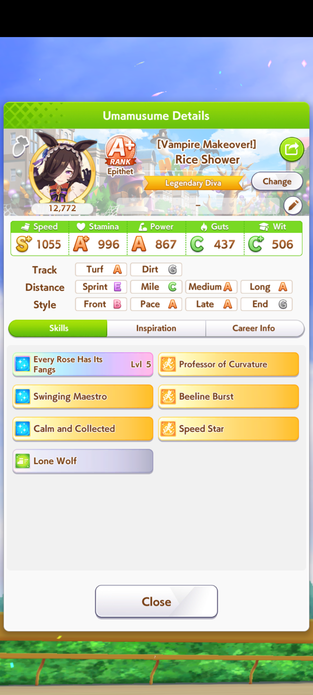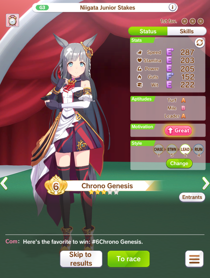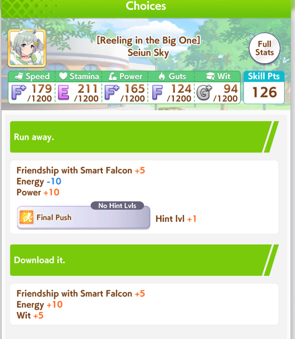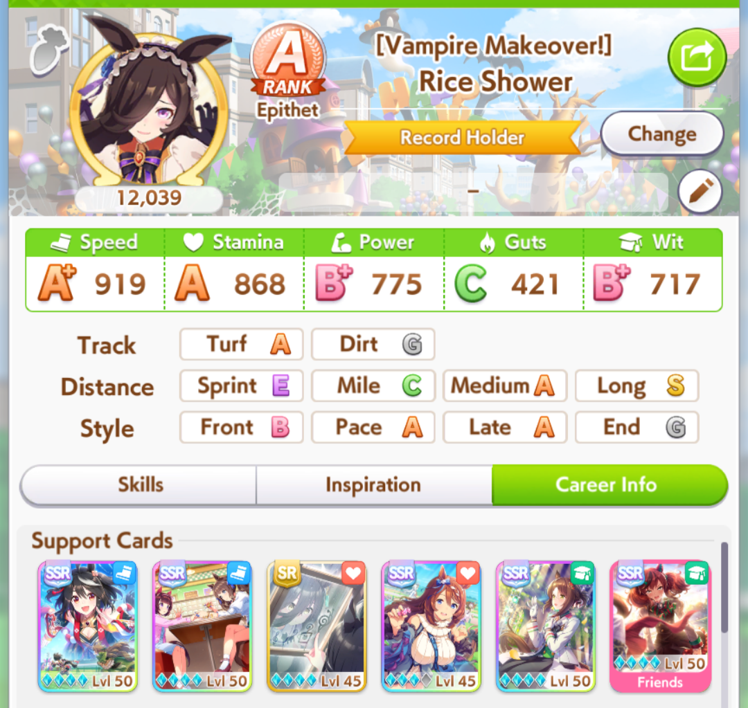 >>560111734You stop being gaslighted by the people telling you to get 90 race bonus and make a deck that is a compromise between good race bonus, good stats and good skillsNo one talked about SR guts Sirius for example when she's one of the few guts card to have +1 speed bonus with Vega