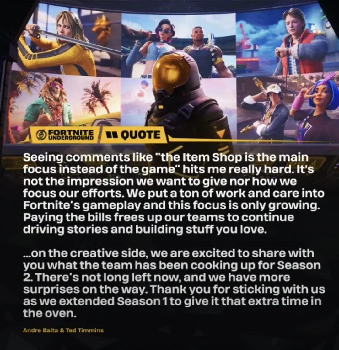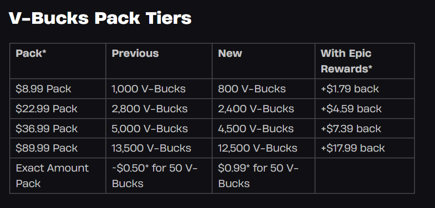 >we need to cut ur vbucks and remove benefits to our product so you can spend more money on thinks that won’t make us money.