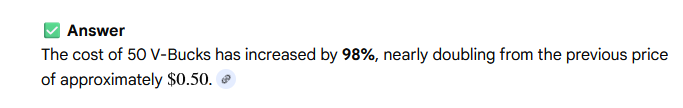 >>5601632753k is already bad enough and this is just before the vbuck price increase and less vbucks from said purchase, very not subtle hint that bundle prices are going to increase as well