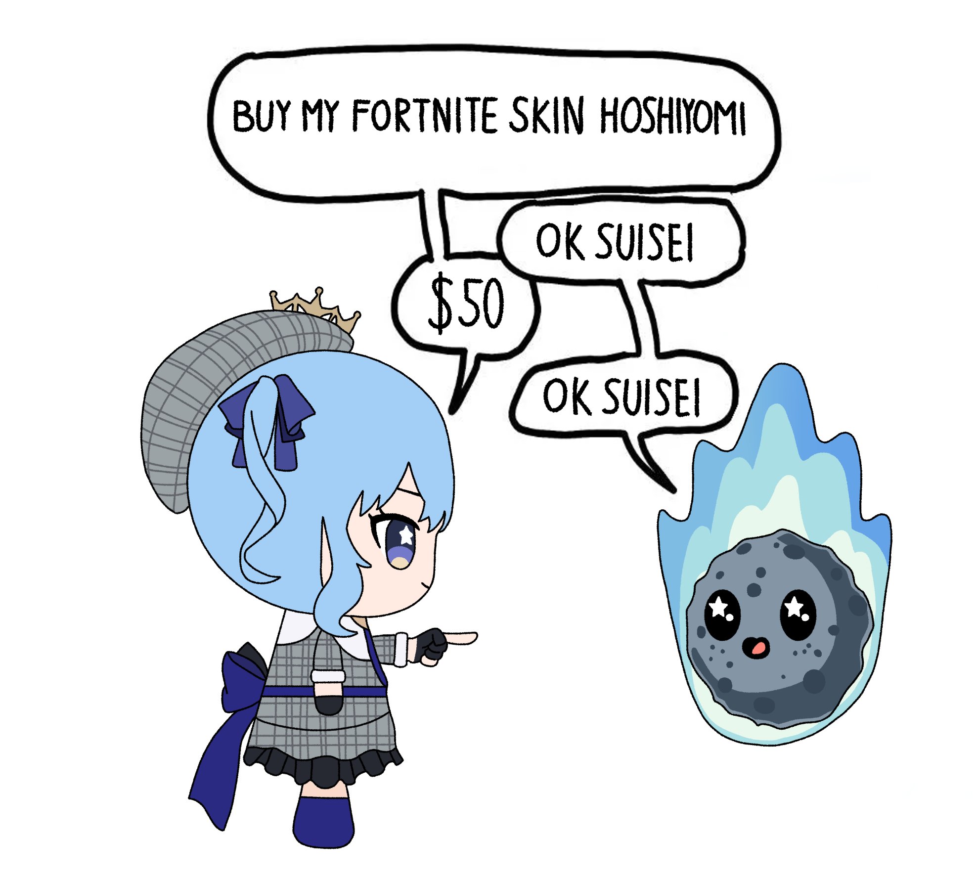 >Tanked Suisei's hype when her fans would have easily loaded up on vbucks for her + extra stuff to compliment the bundle