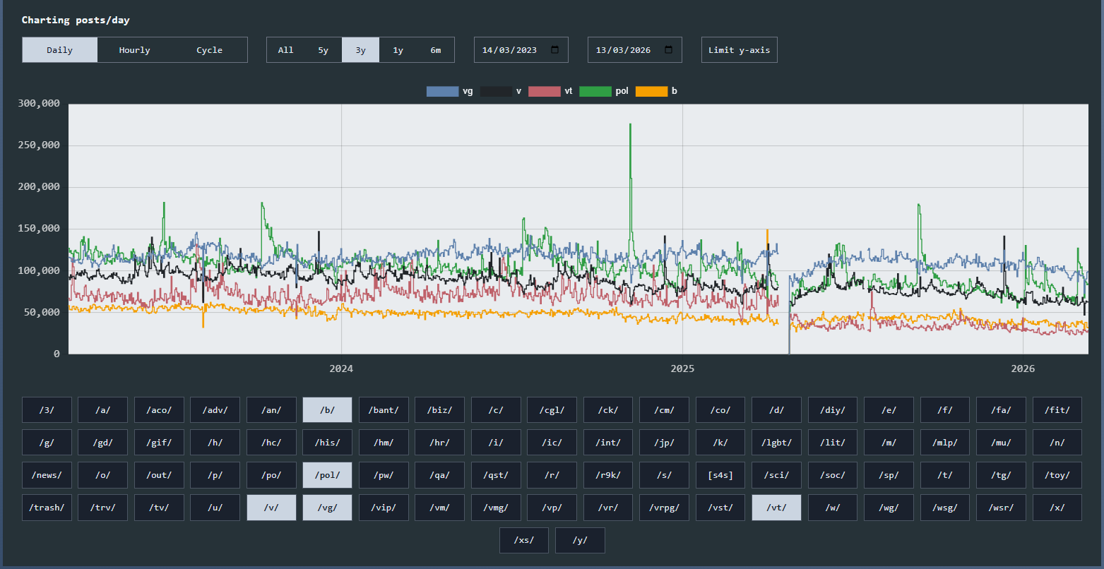 >>560168059Other boards had a activity decrease of roughly 10%-20%. While the vtuber board activity decreased by more than half.