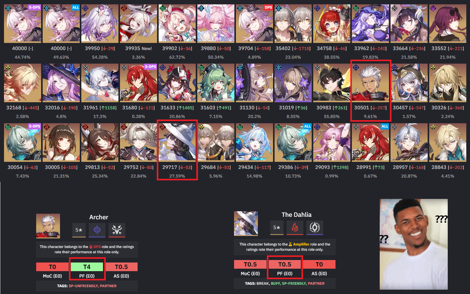 >>560112846>dahlia that high>acheron yunli saber need to be higher>therta doesn't need a nf yet, just a proper erudition partner>feixiao needs to be higher>fu luochud topaz that low