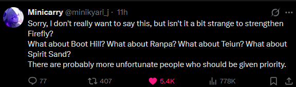 >>560127717Because firefly getting buffed is not fair to me