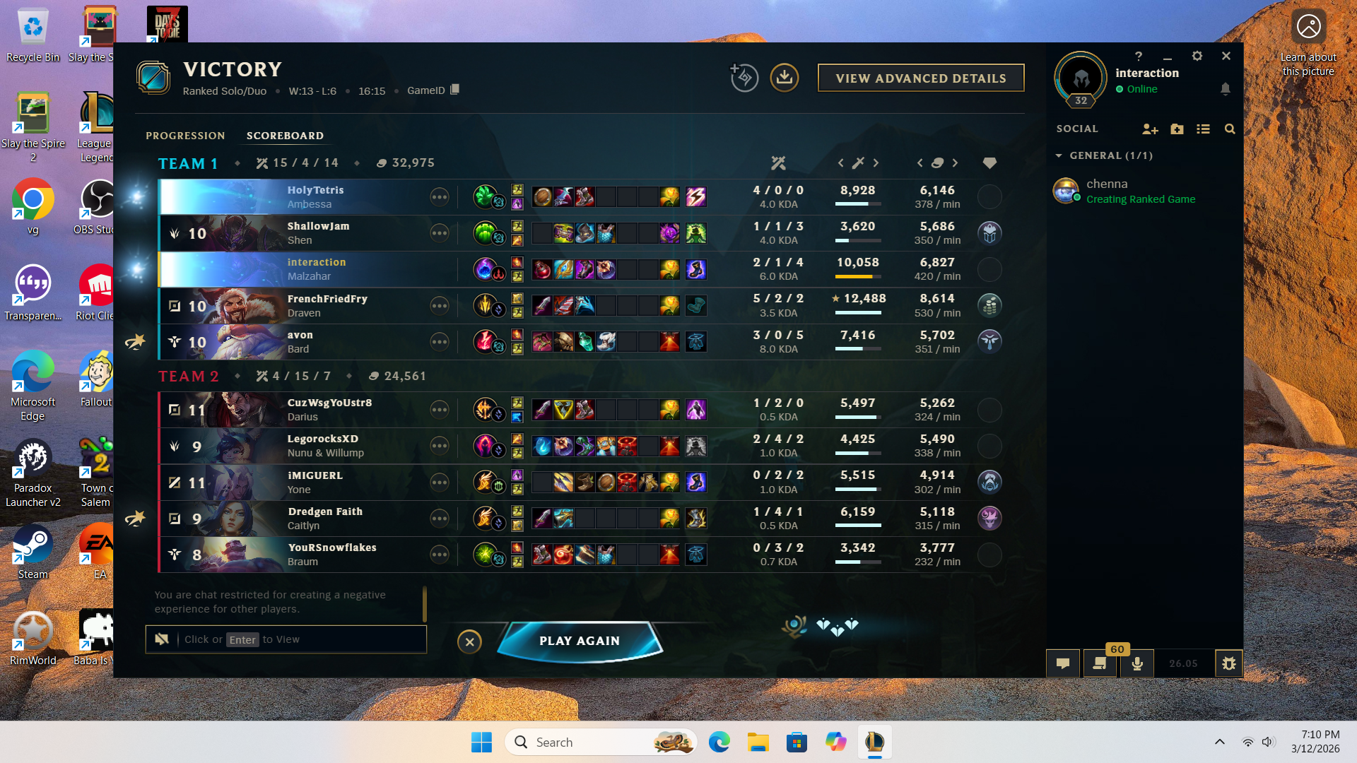 The worst part of the no chat meta is that you can't even say sorry for the suffering.