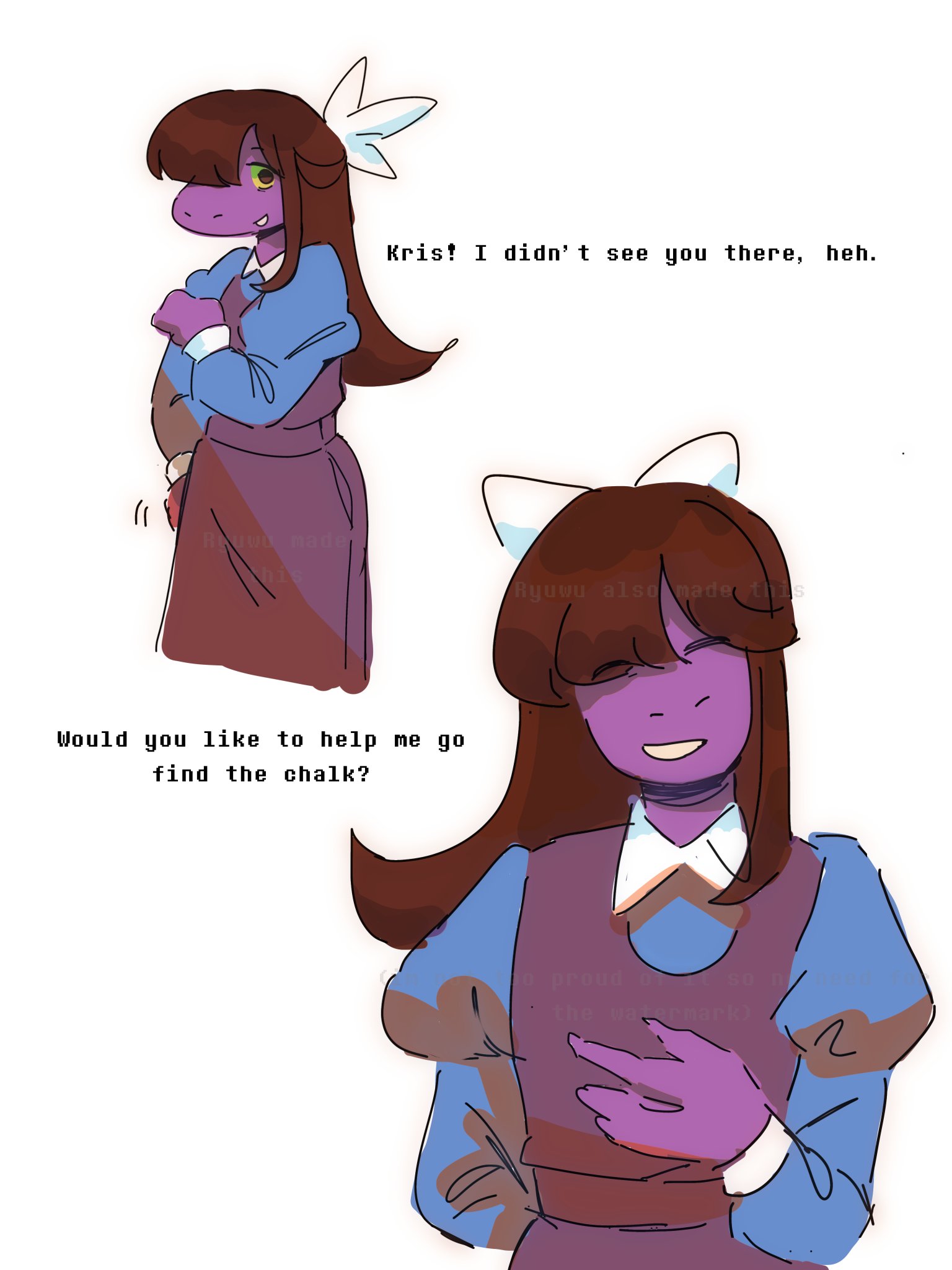 >>560245441NOOOOOOO anon noooo noooooooo *overwrites bad sectors*Hey fans of Undertale and Deltarune! I really cannot wait for the next chapter of Deltarune! These are great games with rich characters and music, hey, why don't I grab some cool art from other fans, and we hang around and see if we can come up with cool stories or other stuff? Come on, let's go!