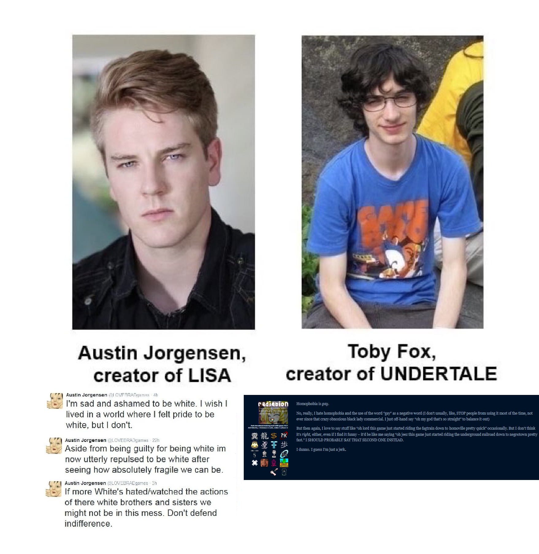 >>560231927what would even be the point of doing itthe stakes of deltarune's story are "the world is going to fucking end unless we make some horrible unspeakable sacrifice" and possibly a massive conspiracy to save dess from death/nonexistence/possession by titan spawn/living-in-the-code-purgatorythe gender identity of a faggotity two-faced fictional object that spends 90% of his screen time lying by omission and scheming out of our sight is the last thing i and anyone actually invested in the plot give a fuck about