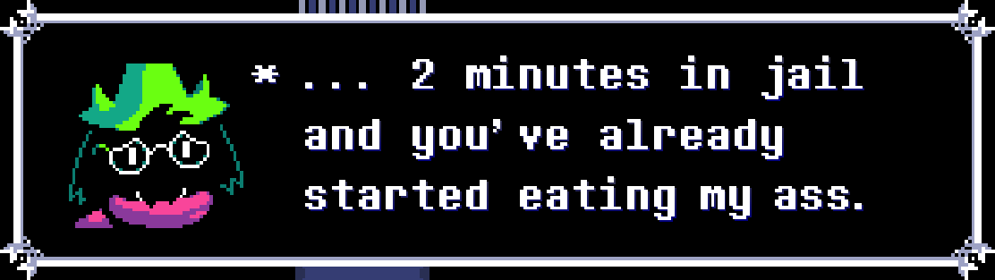 If Deltarune doesn't have at least one Darkner that was created purely to be that Darkner and as a result has a completely alien Light World form I will sue Toby for failing to uphold his end of the bargain of me waiting 12 years and him doing something cool like that