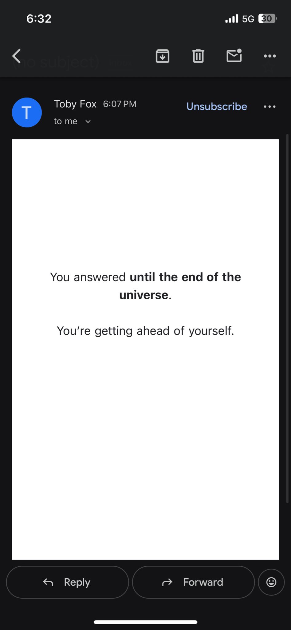>>560244552>GreatestToby dying like Miura and so we're left wondering what could have beenAI getting so good someone completes Chapter 6&7 before Toby so he getsfed up and quitsSociety collapsing to the point we can't even play computer games anymore before Deltarune is finished