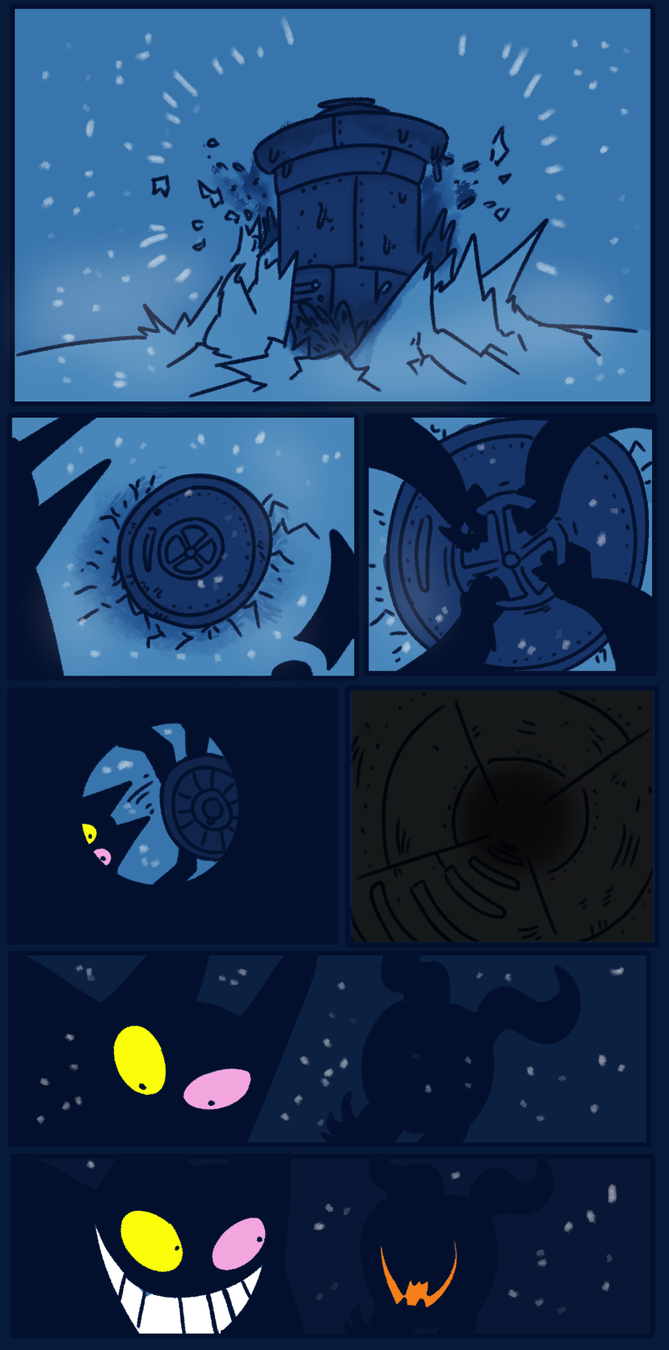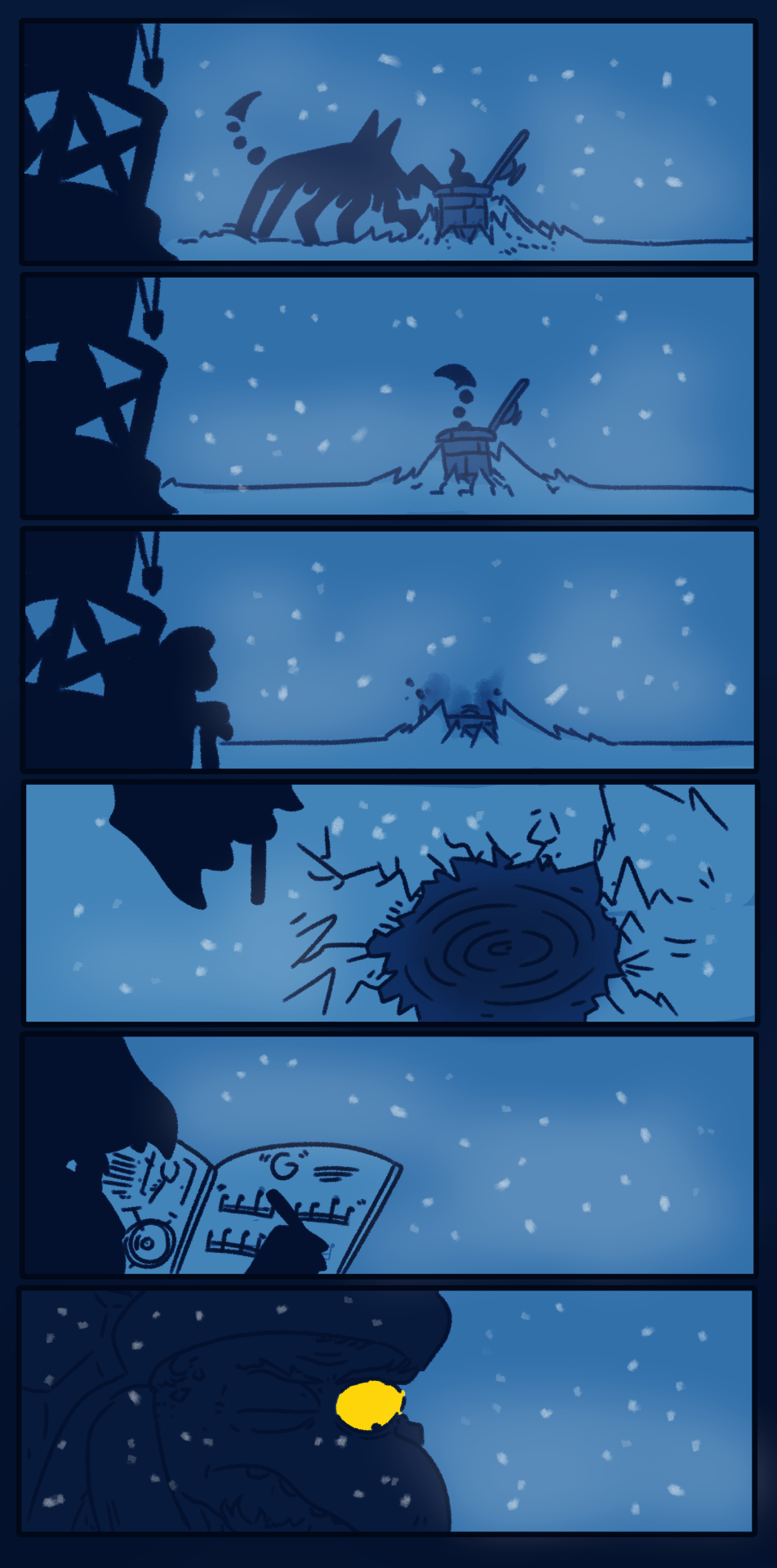 >>560236530The Still Sea.>the new wastes brought about by the Ice Witch and Thorned Heir, there seems to be almost nowhere that they do not control, or at least plan to take over…except for one. To the north of the Ice Castle, there lies a seemingly endless expanse of frozen ice, a lake that (through the transformation of the Roaring) has been turned into a sea. The snow still falls, and the wind still roars, but make no mistake, the forces of the heir have no power here. Here, the wind carries whispers, shadowy sentinels watch travellers from afar, and all the while, the waters still churn beneath the frozen sheets of ice. Hiding unseen depths, cradling shifting shadows and sunken songs.>Who has made a home of this place? Could they hold some salvation against the Thorned Heir and their followers…or do their machinations hold only further doom for our heroes? The Shelter has been abandoned…but what self-respecting doctor keeps only one lab?